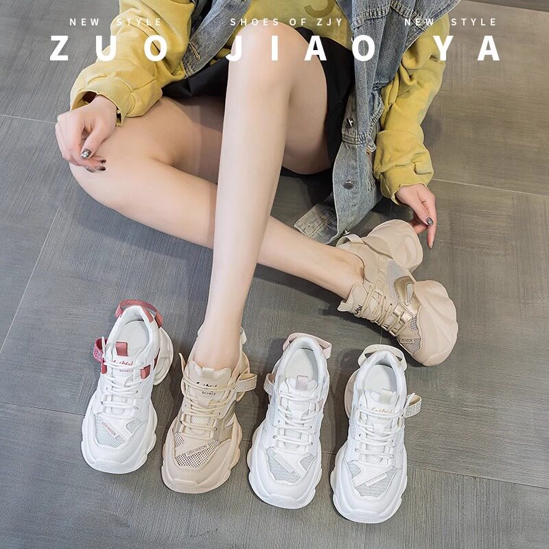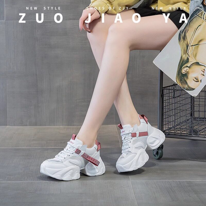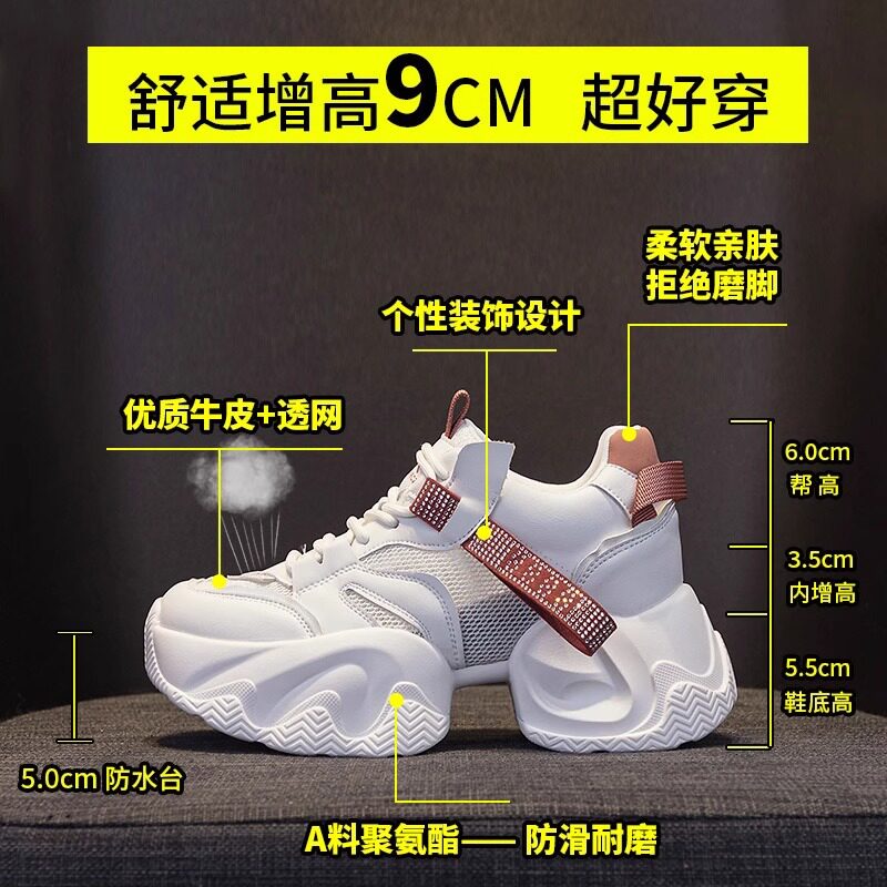 明星9cm小个子厚底内增高老爹鞋女2025夏季网面透气运动小白女鞋