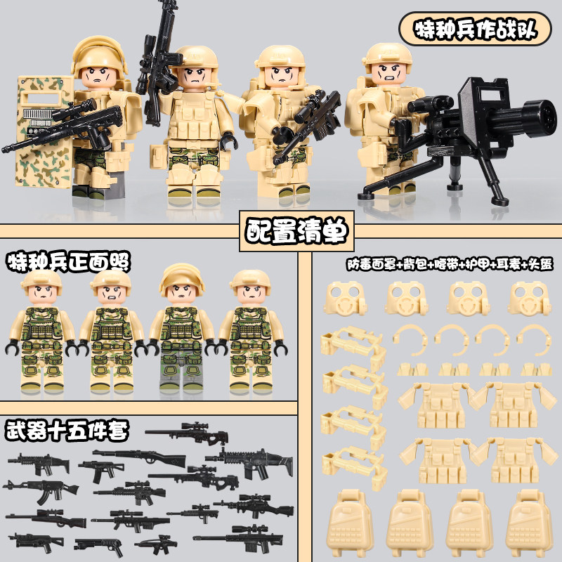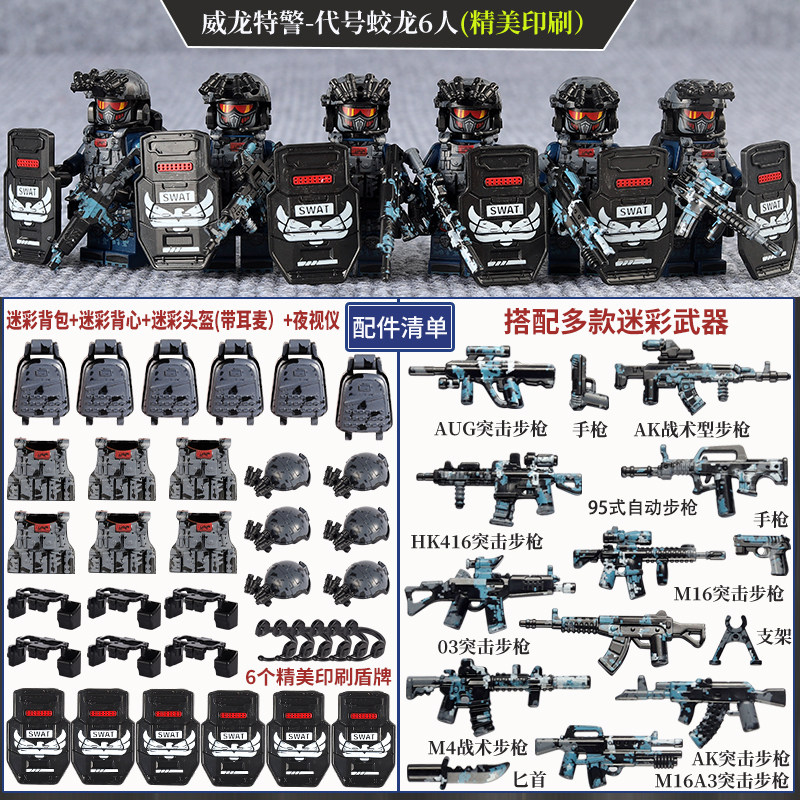 兼容乐高积木军事人仔警察特种兵小人三角洲行动模型拼装玩具男孩