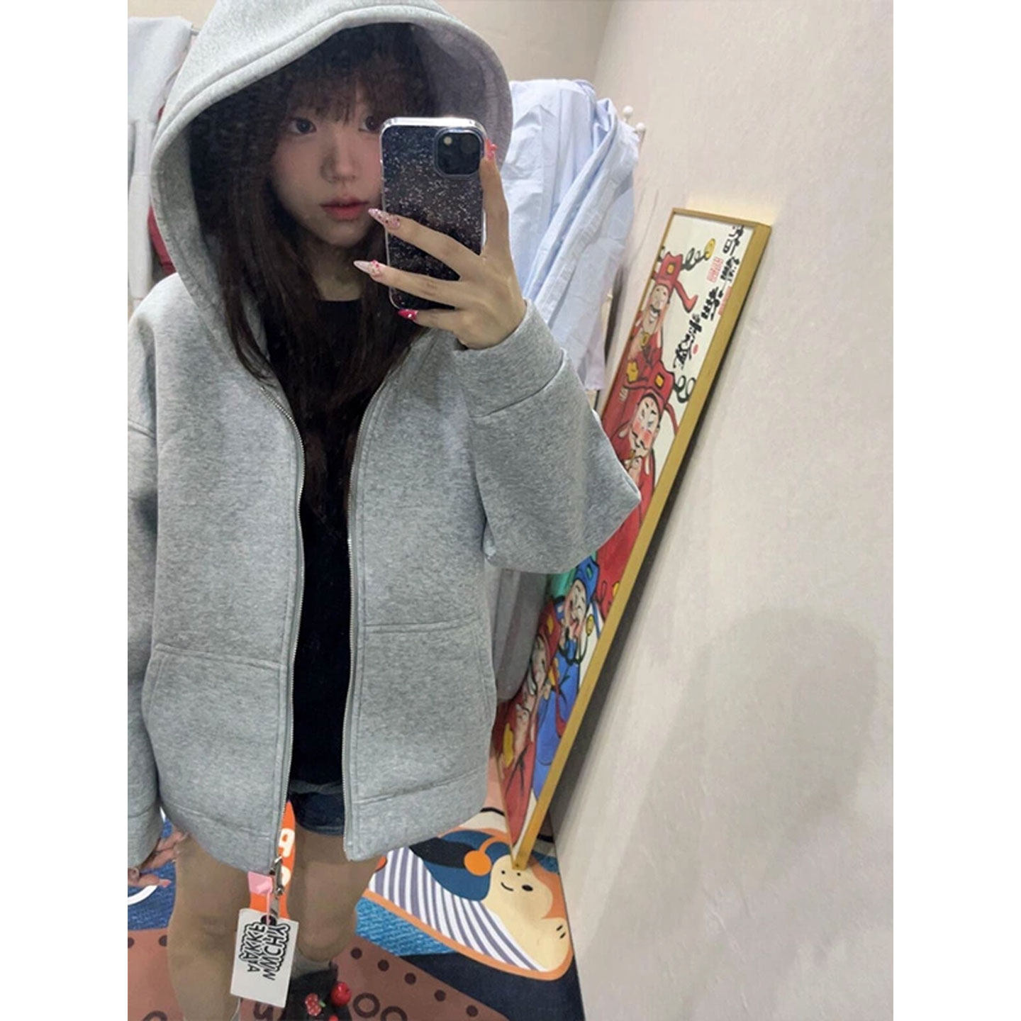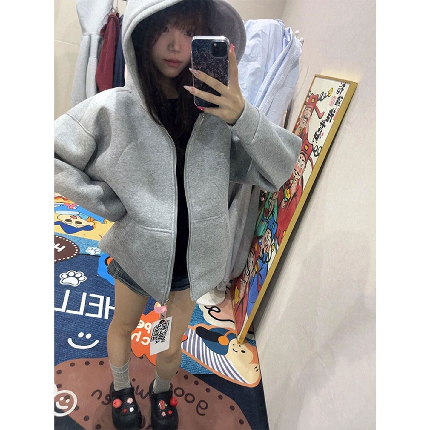 秋冬季加绒加厚灰色连帽卫衣女2026新款爆款时尚洋气开衫拉链外套