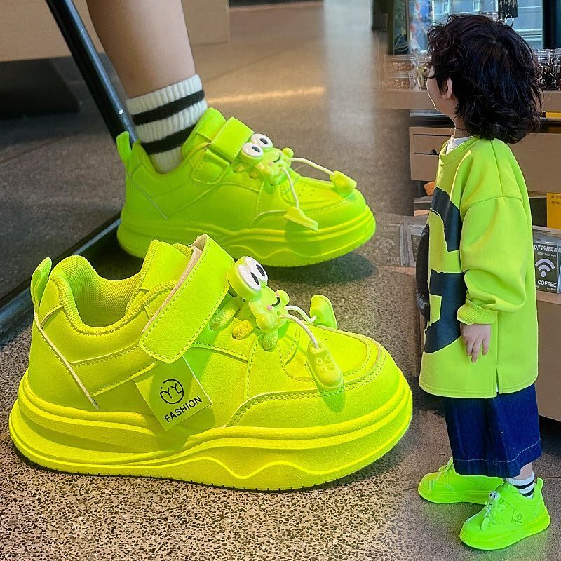 儿童鞋运动鞋春秋季新款女童多巴胺荧光绿轻便板鞋男童软底休闲鞋