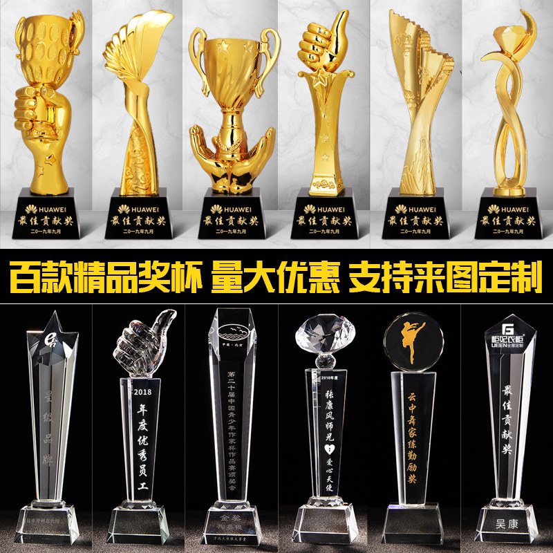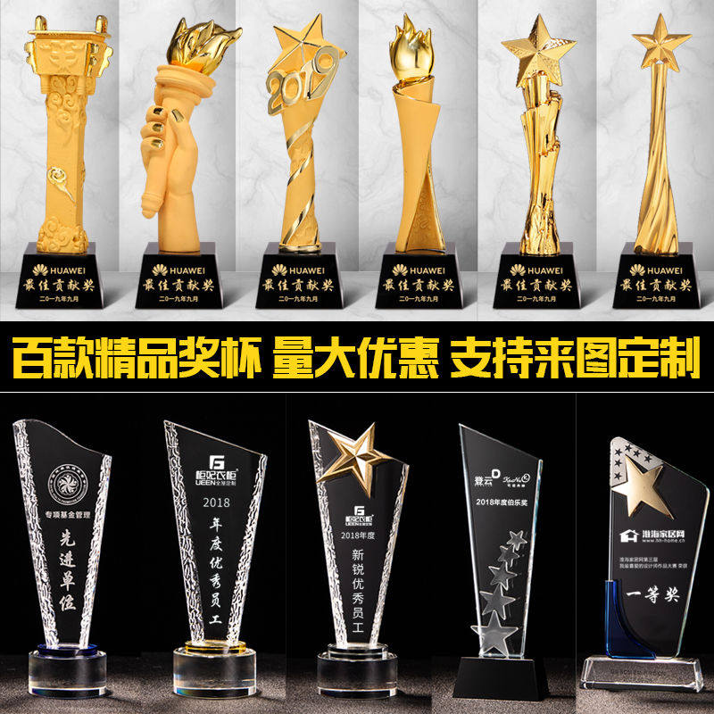 水晶奖杯定制定做刻字大拇指五角星公司年会优秀员工颁奖奖牌制作