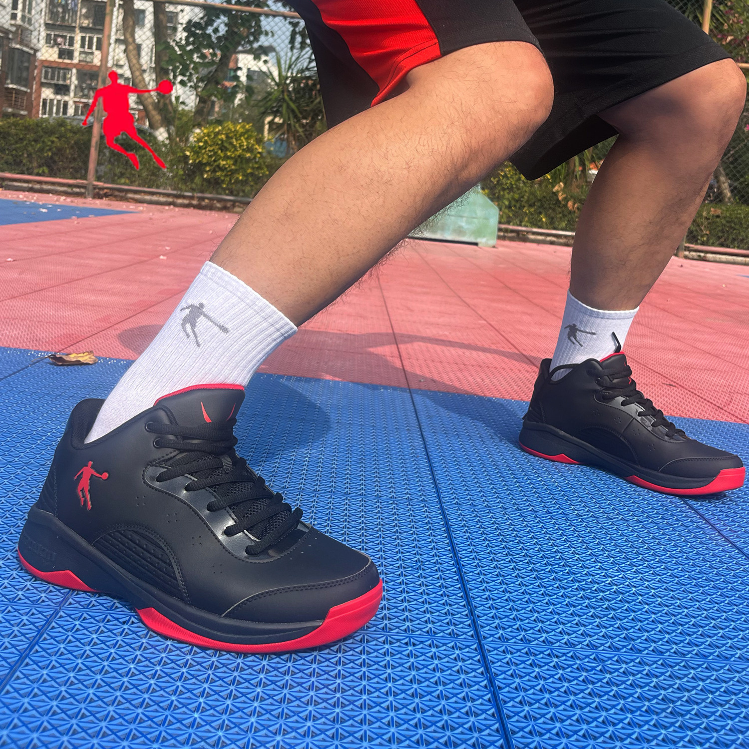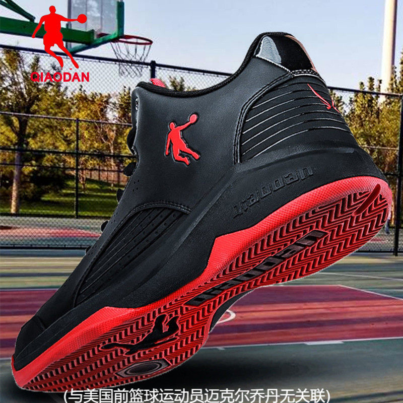 乔丹低帮篮球鞋红黑色皮面防水运动鞋正品篮球场中学生水泥地战靴