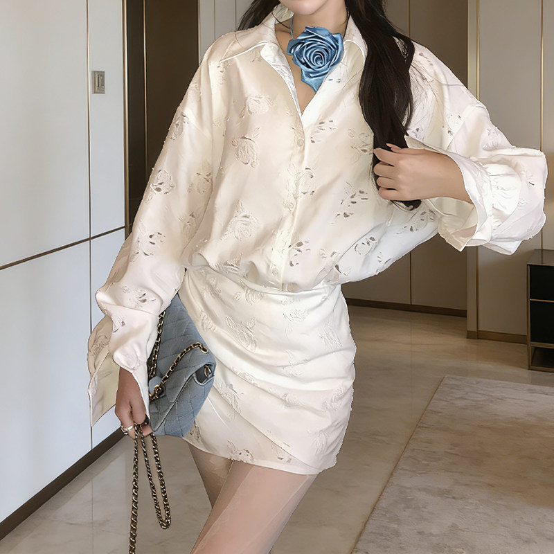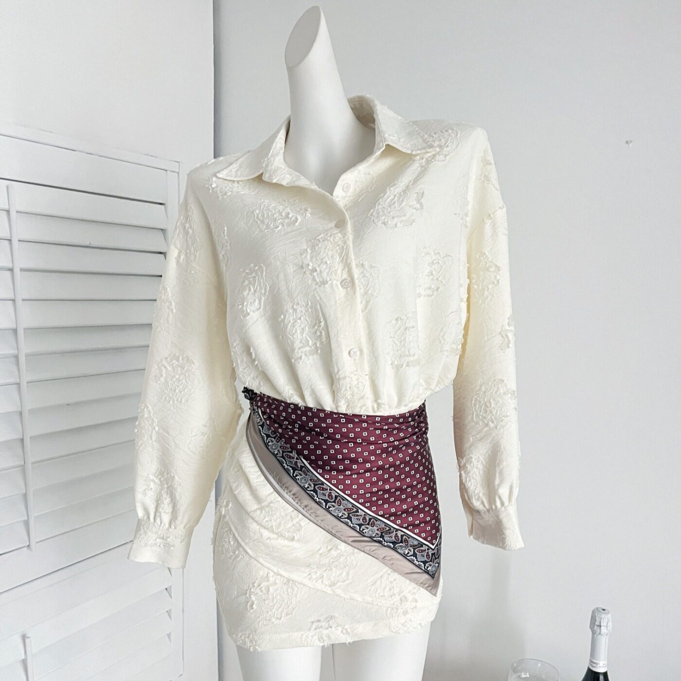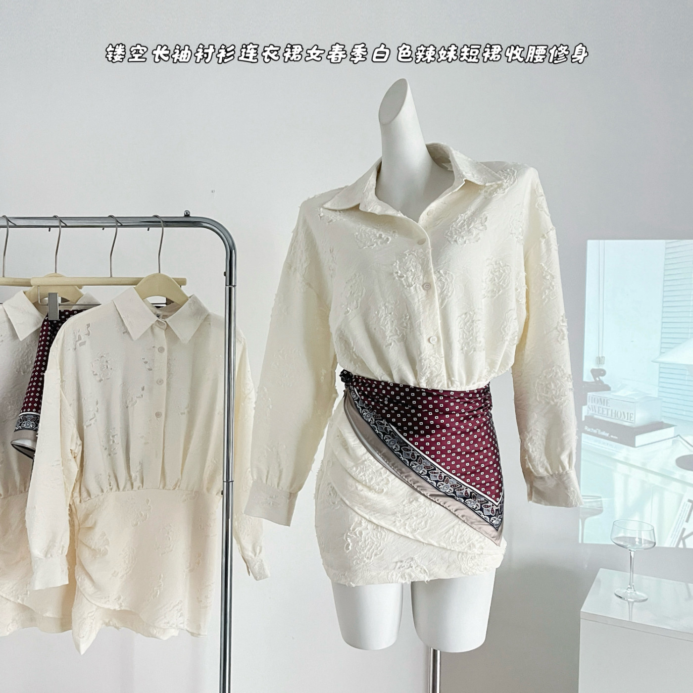 镂空长袖衬衫连衣裙女春季白色辣妹短裙收腰修身显瘦裙子