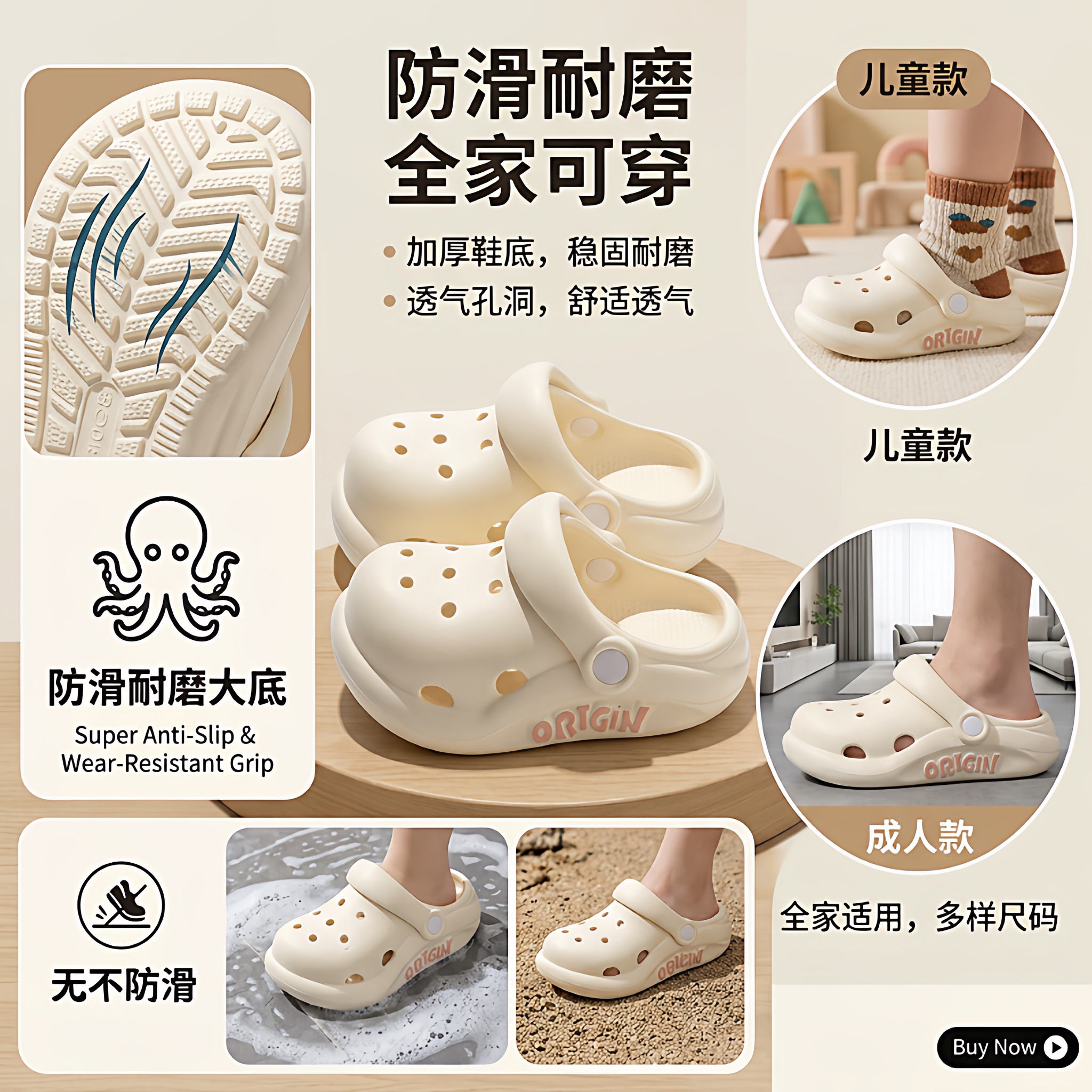 洞洞鞋男宝2026新款eva防滑防臭夏季外穿厚底踩屎感可爱凉拖鞋女