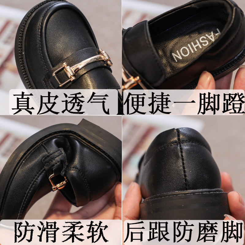 311线报网描述:真皮柔软防滑软底女童皮鞋表演鞋乐福鞋黑色