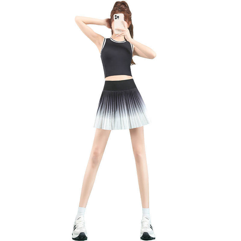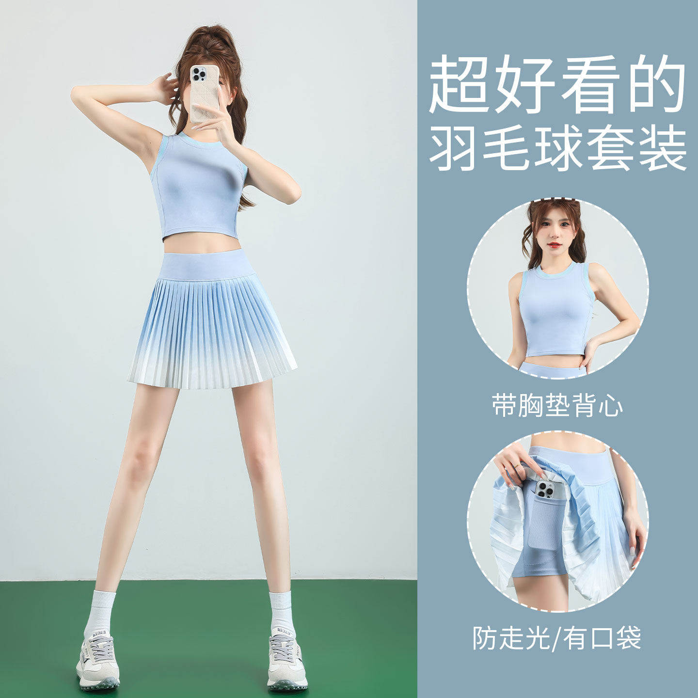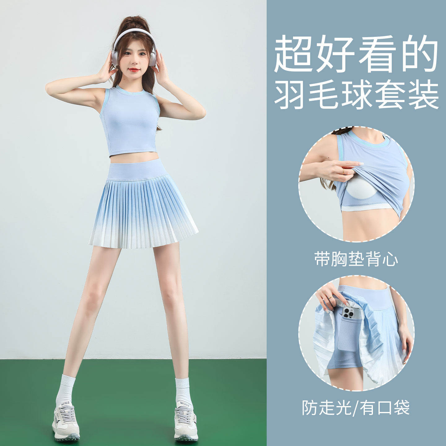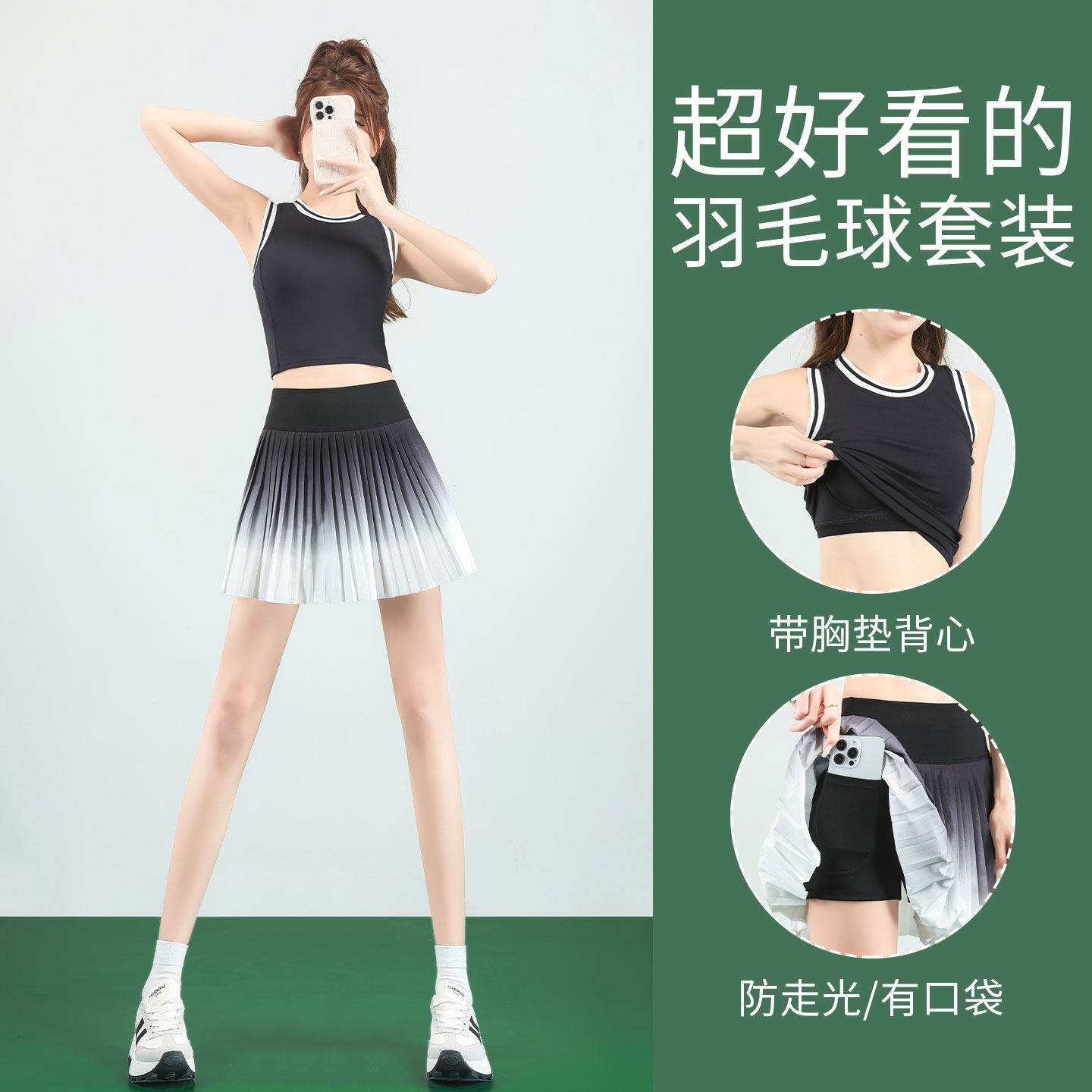 高级感羽毛球服女夏薄款网球运动套装健身速干衣百褶短裙跑步背心