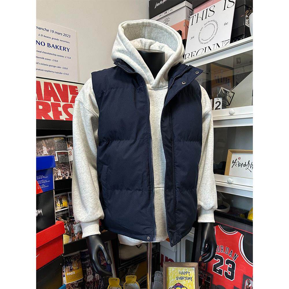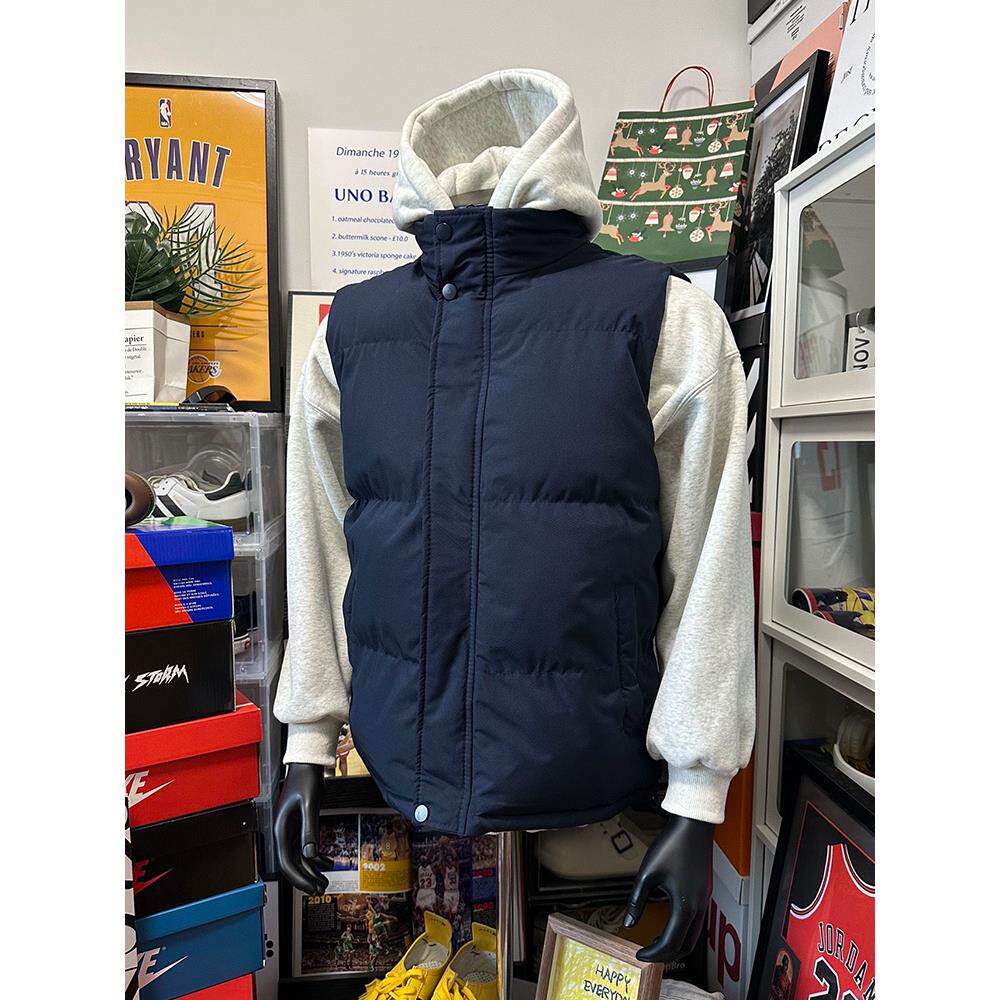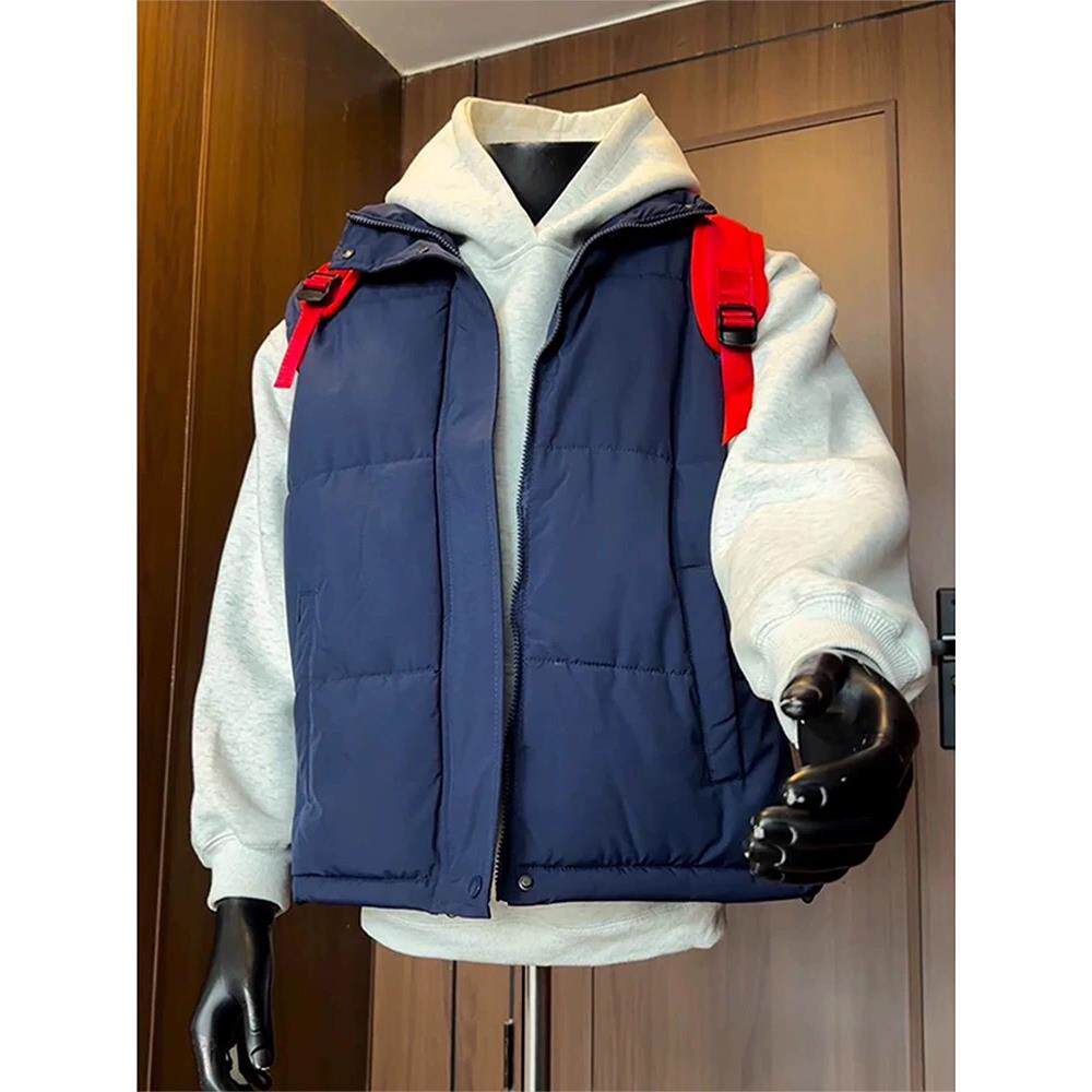 藏蓝色美式羽绒马甲男款秋冬青少年叠穿外搭背心立领棉服坎肩外套