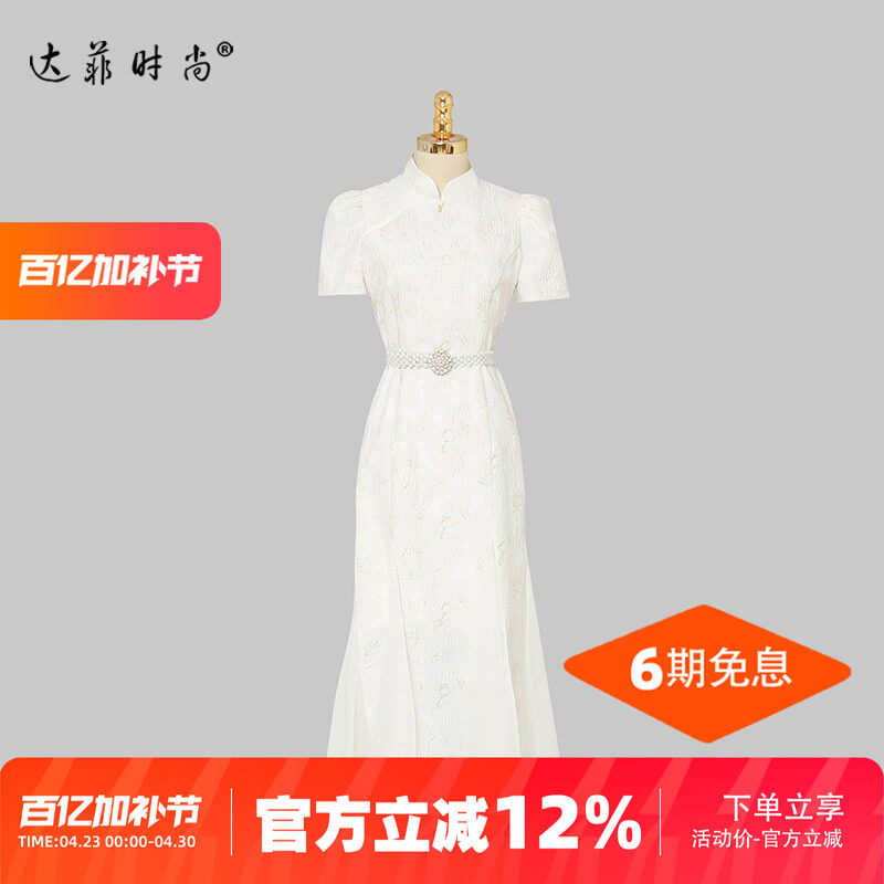 2026夏季新款新中式提花泡泡袖收腰显瘦鱼尾摆长款连衣裙
