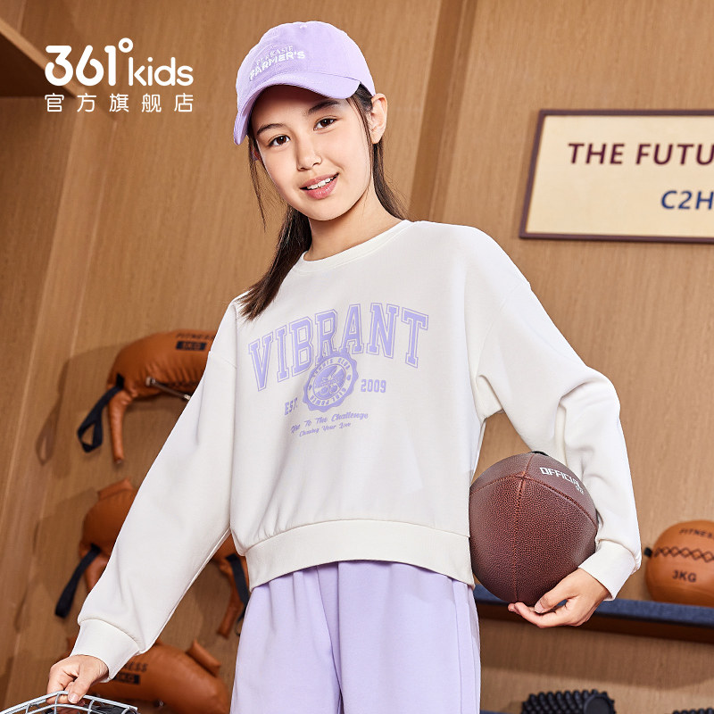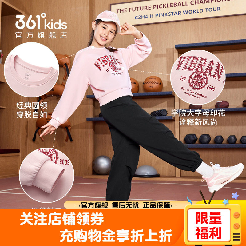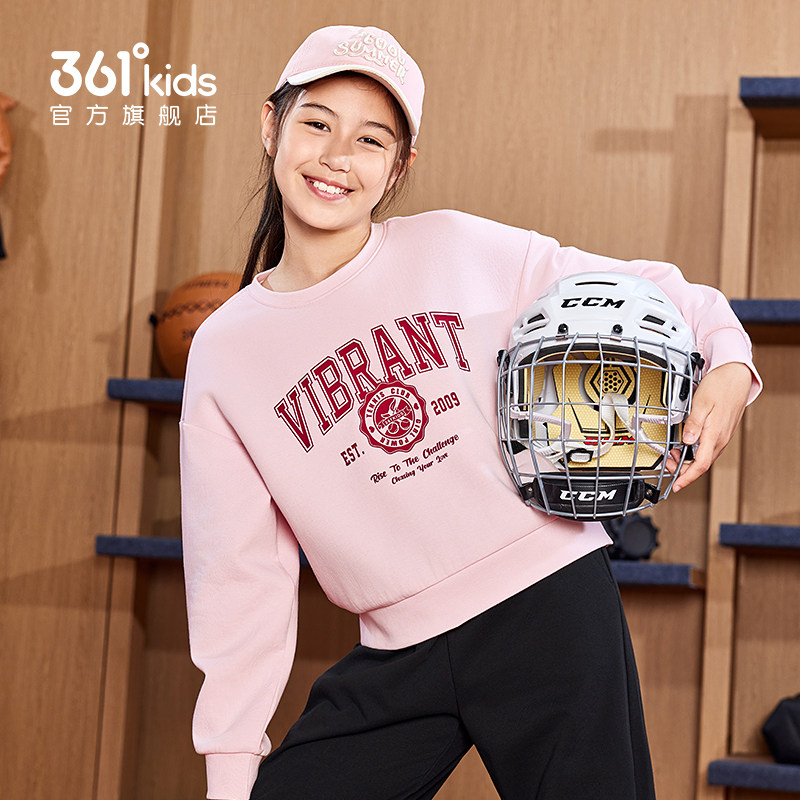 361度童装女童套头卫衣2026春季新款百搭圆领宽松小学生女款长袖