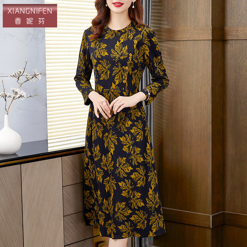 香妮芬高端奢华精致中年妈妈羊毛连衣裙女2026新款春季显瘦气质装