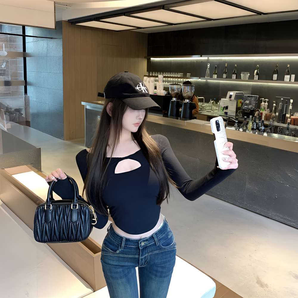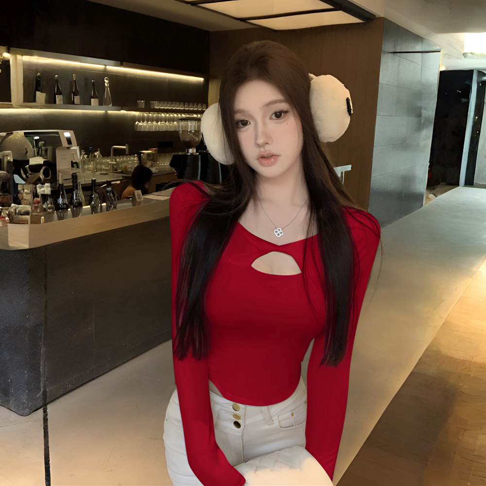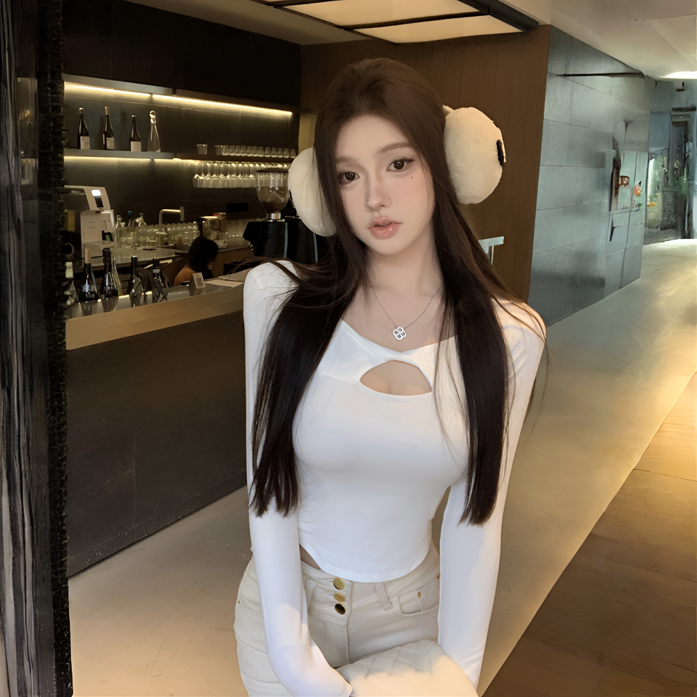 纯欲风设计感小众气质打底衫长袖女修身显瘦秋冬新款镂空别致上衣