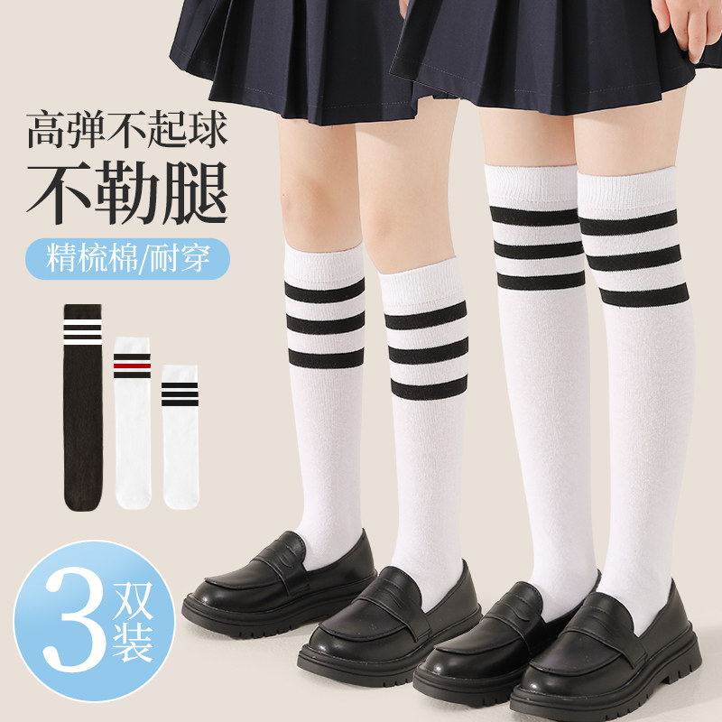 儿童长筒袜夏季薄款白色学生运动足球春秋过膝高筒男女童中筒袜子