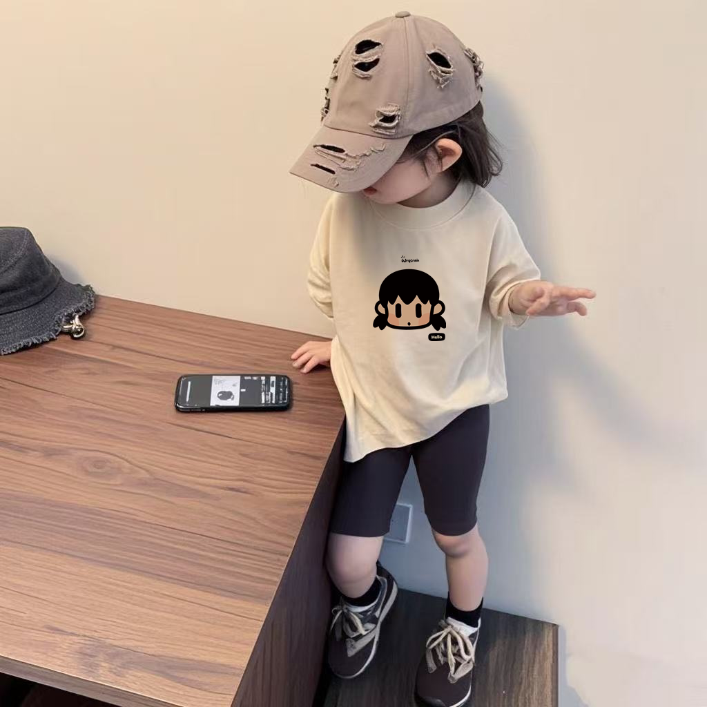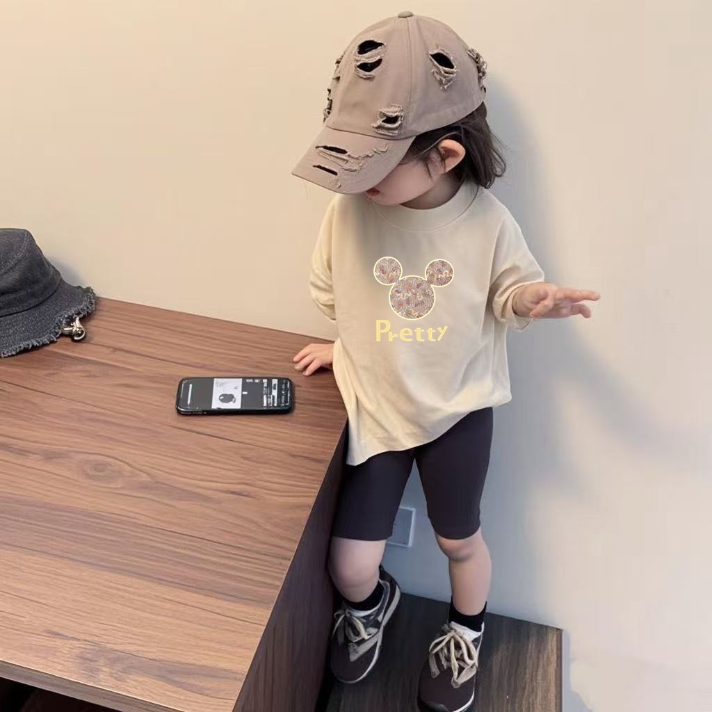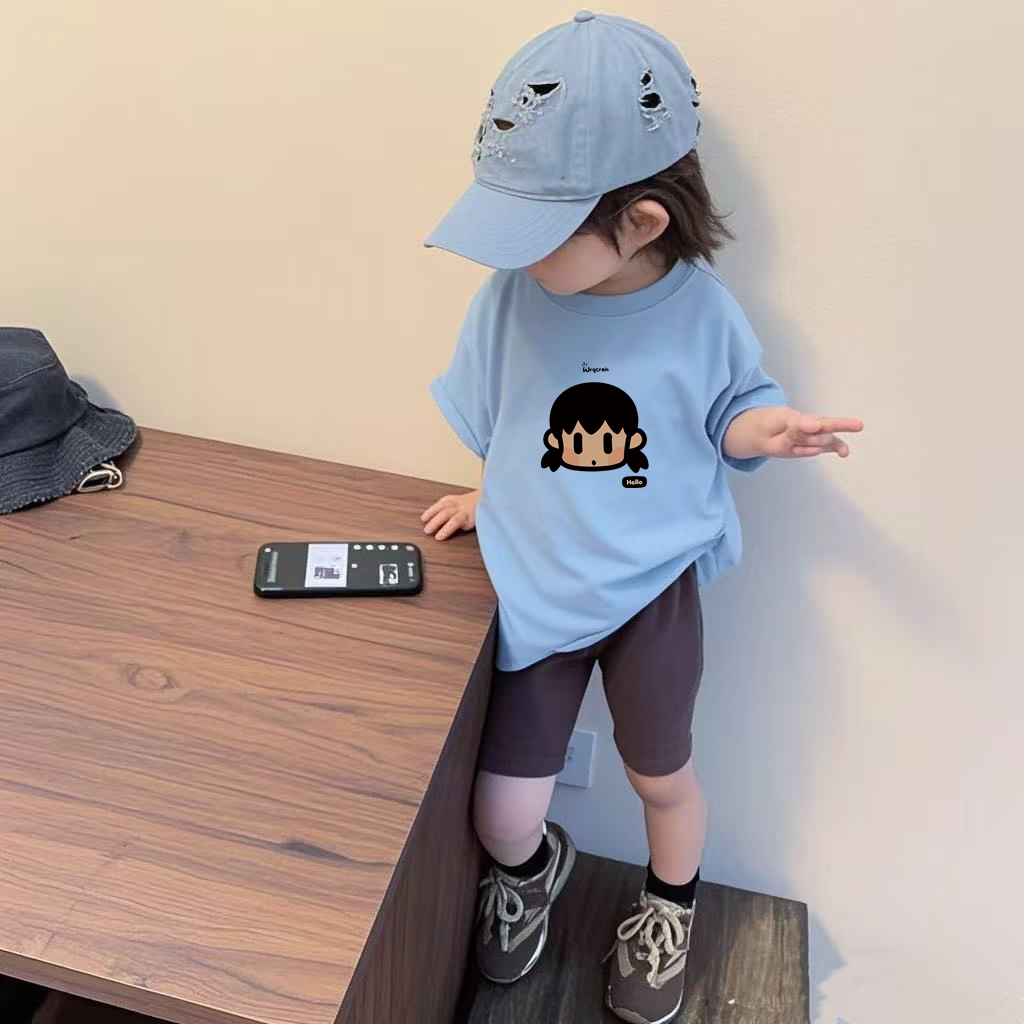 女童短袖套装夏季款卡通印花圆领薄款t恤宝宝休闲百搭薄款骑行裤