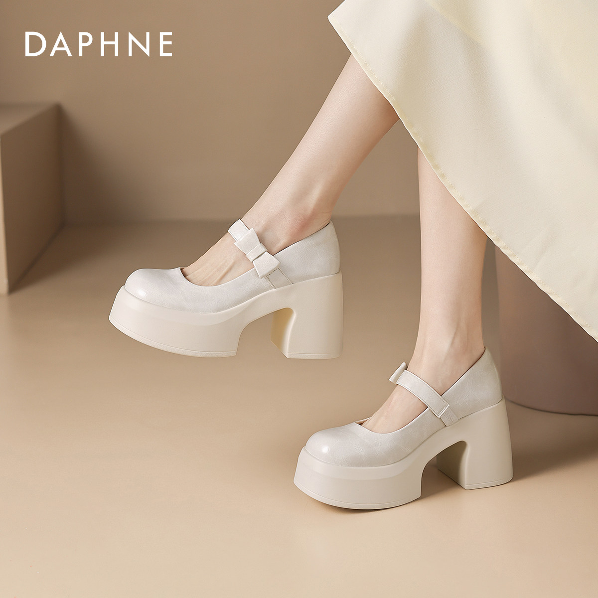 达芙妮高跟玛丽珍女鞋2026新款春夏浅口单鞋小个子增高粗跟小皮鞋