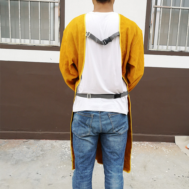 焊工牛皮围裙隔热防烫耐高温氩孤焊反穿衣电焊防护用品牛皮电焊服