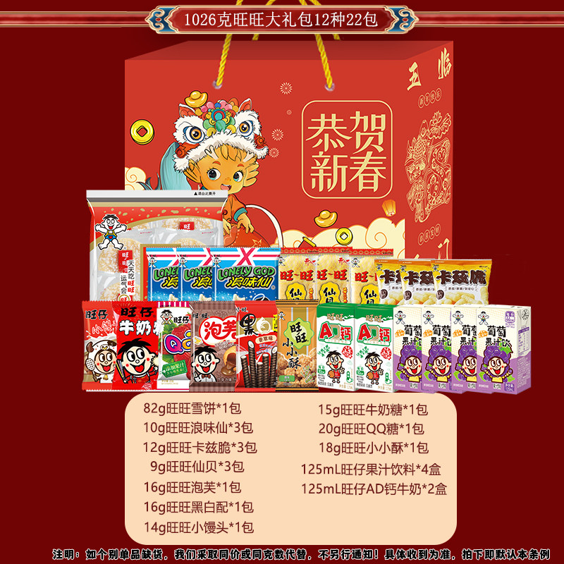 旺旺零食大礼包儿童送小孩休闲食品礼盒装超大巨型新春送礼马年