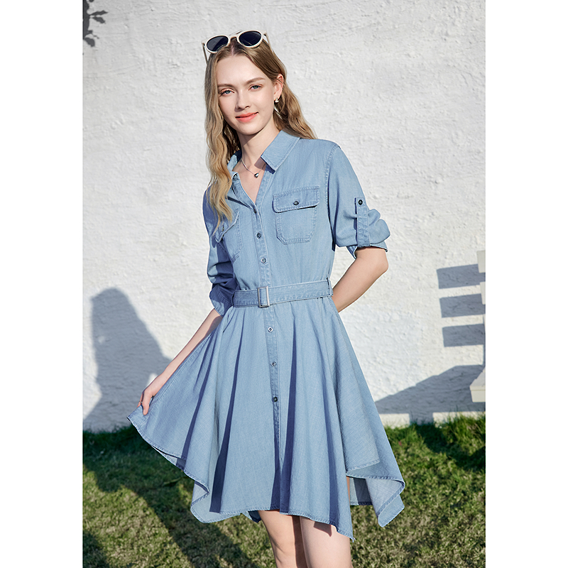 betu百图设计感不规则摆牛仔连衣裙女2026年夏季新款短袖衬衫裙