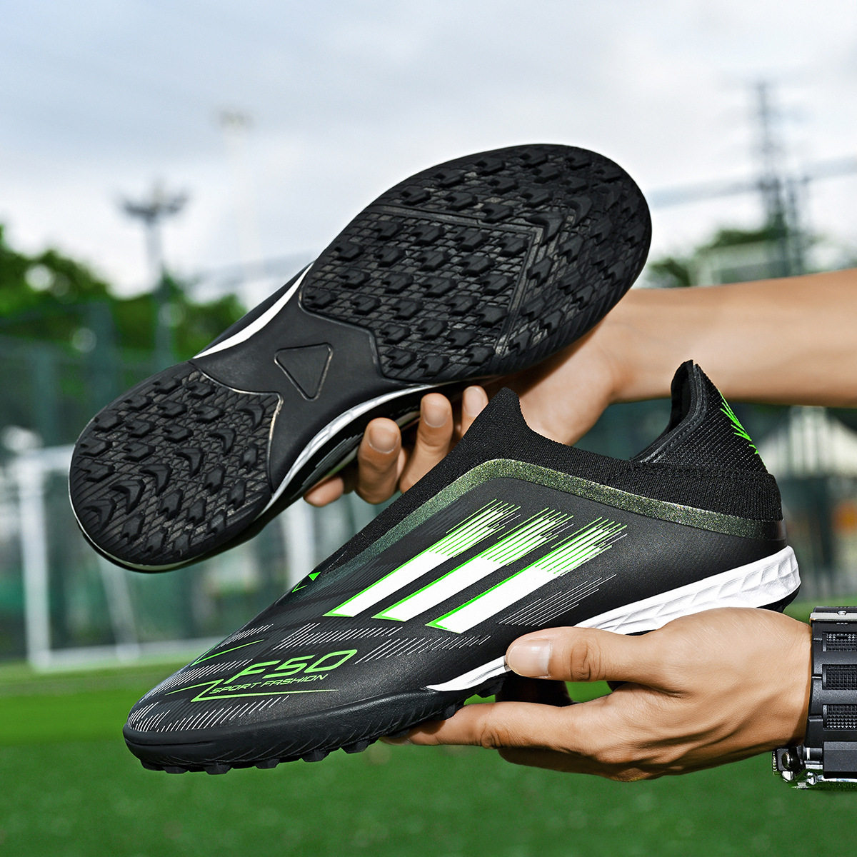 跨境新款系带成人TF碎钉足球鞋男款青少年造草地俱乐部学生足球鞋