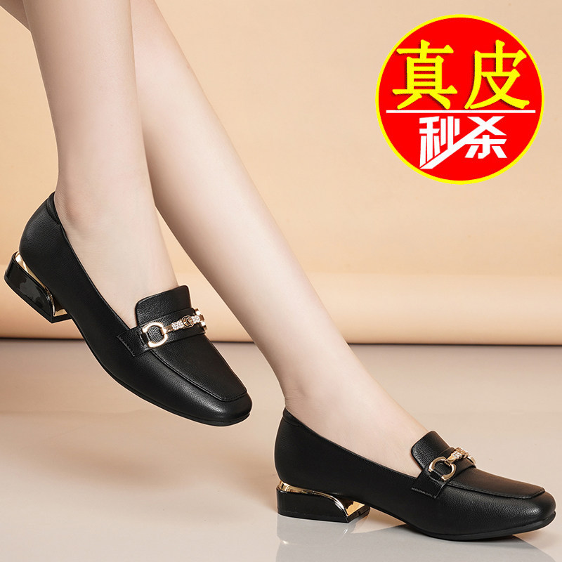 真皮乐福鞋2026新款春夏季黑色小皮鞋单鞋中年妈妈女鞋软底不累脚