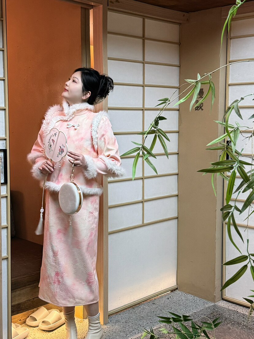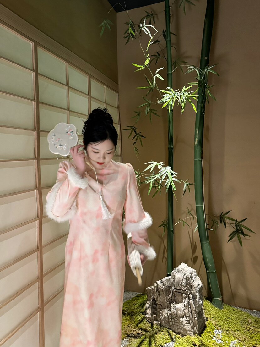 哒头studio【胭脂桃粉】新中式微胖mm大码显瘦2023新款连衣裙套装