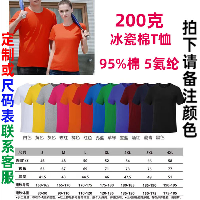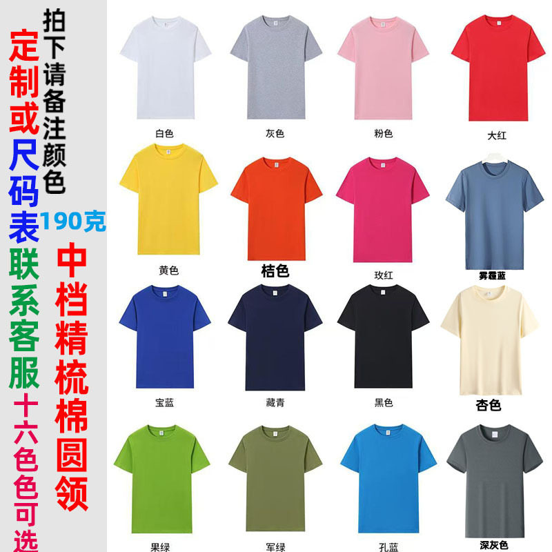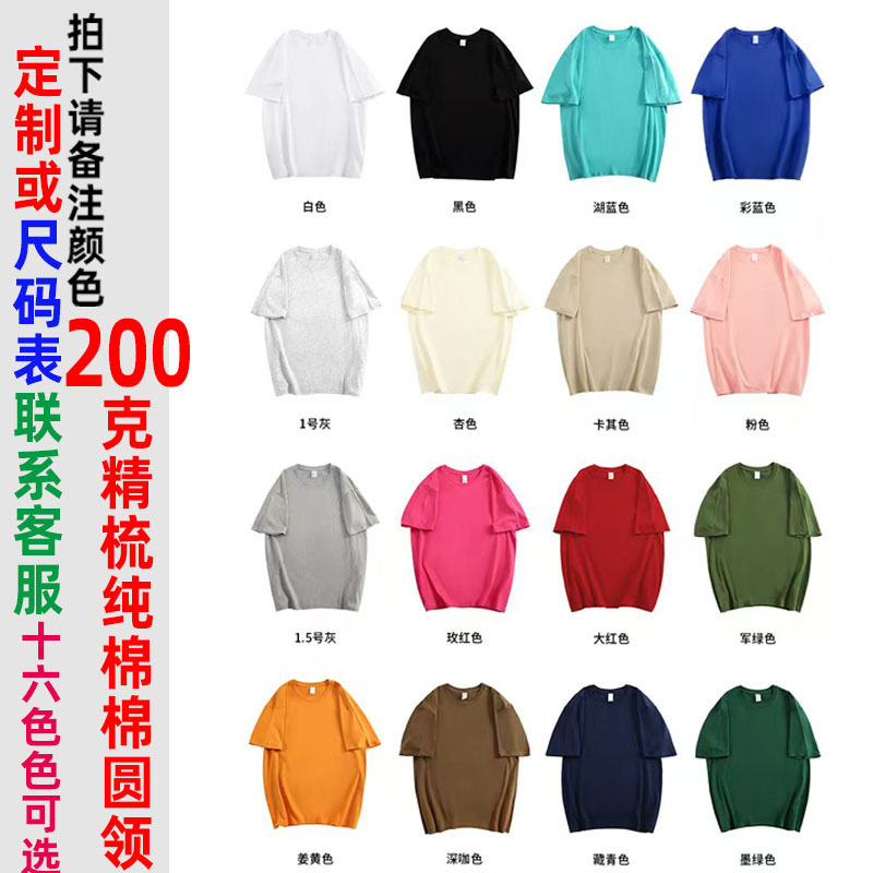 200克精梳纯棉空白T恤定制logo落肩双纱短袖广告文化衫圆领工作服