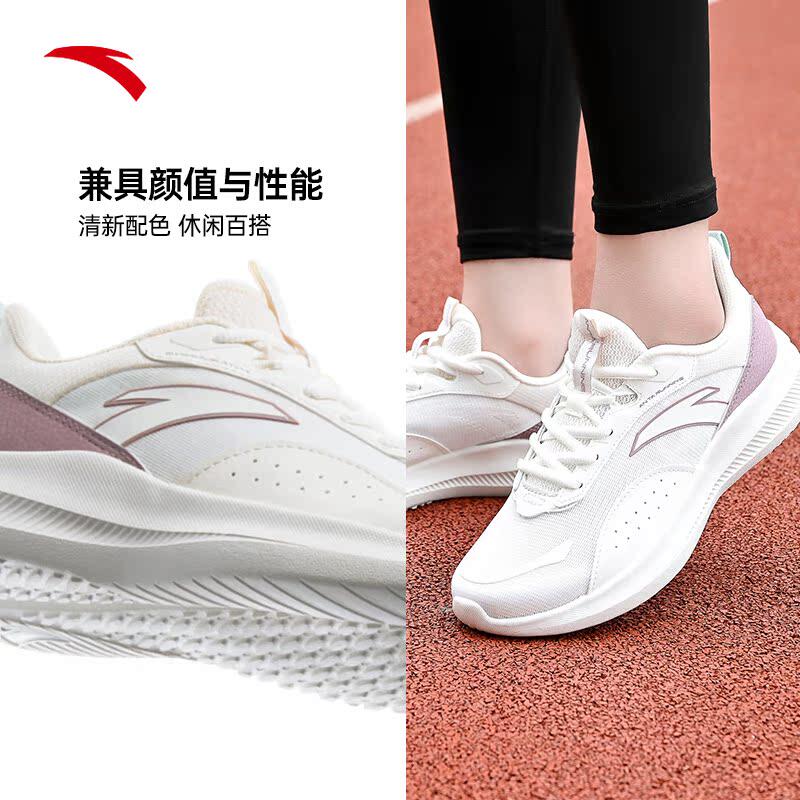 安踏鞋子女鞋2025夏季新款皮面防水休闲鞋正品轻便减震运动鞋女