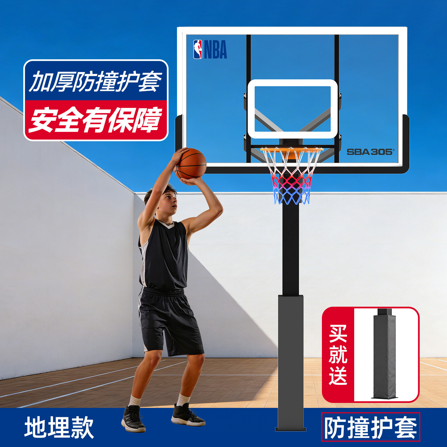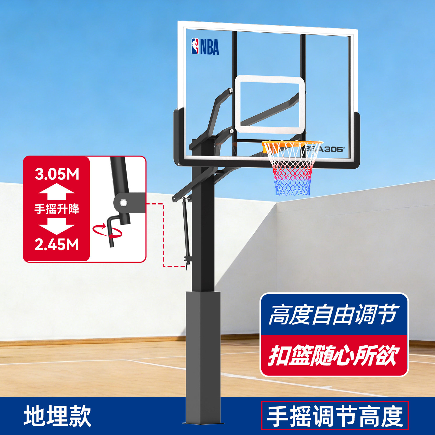NBA篮球架 室内外家用标准成人可升降篮球框固地式方管户外地埋式