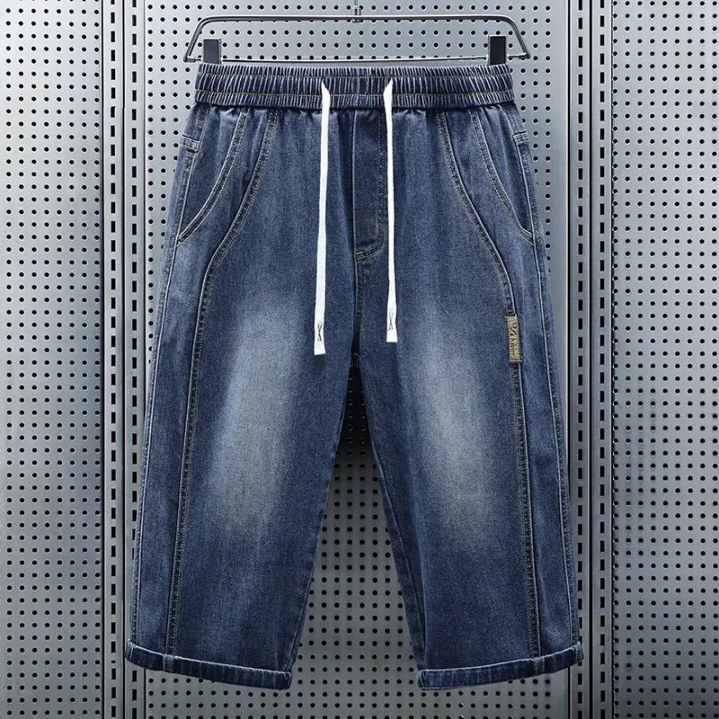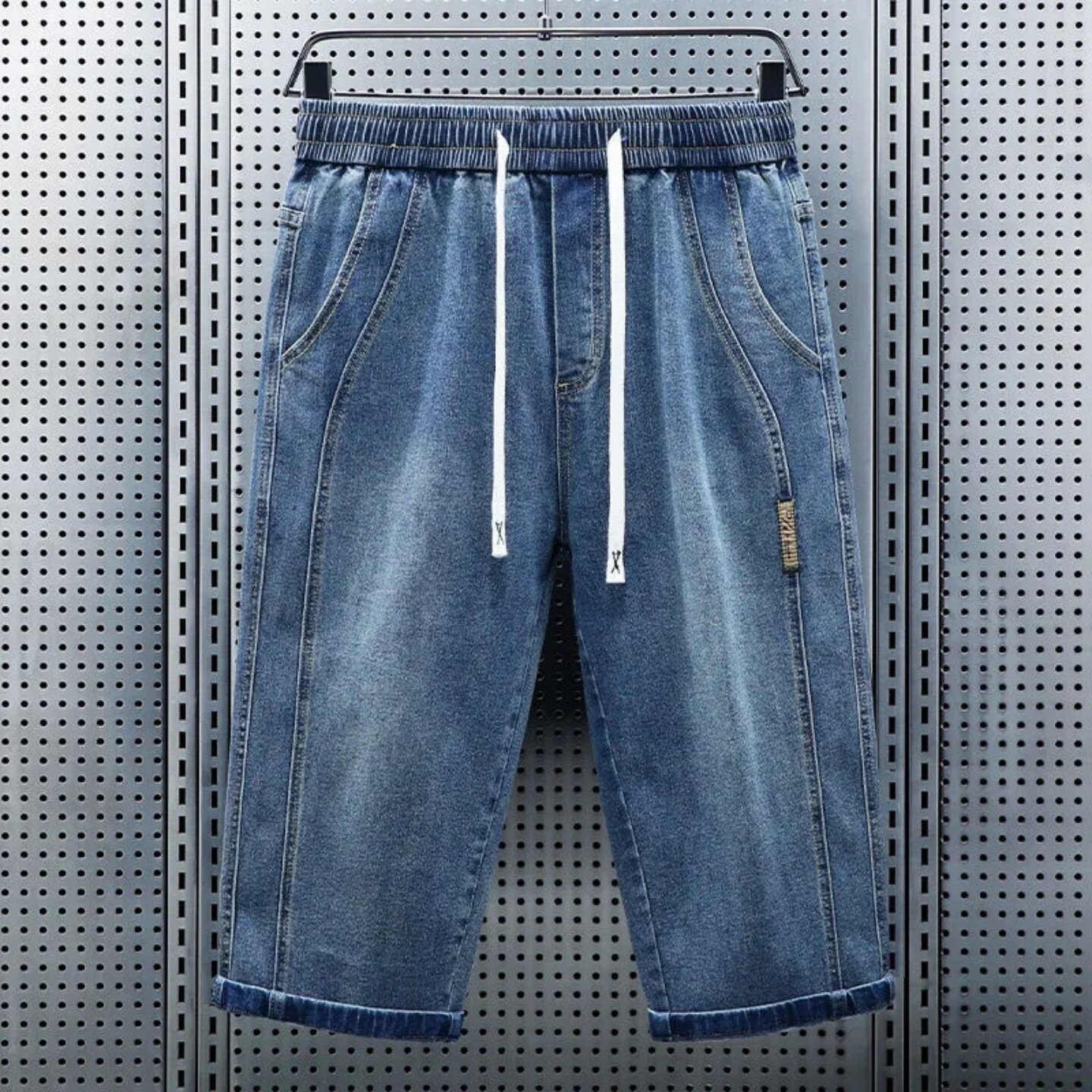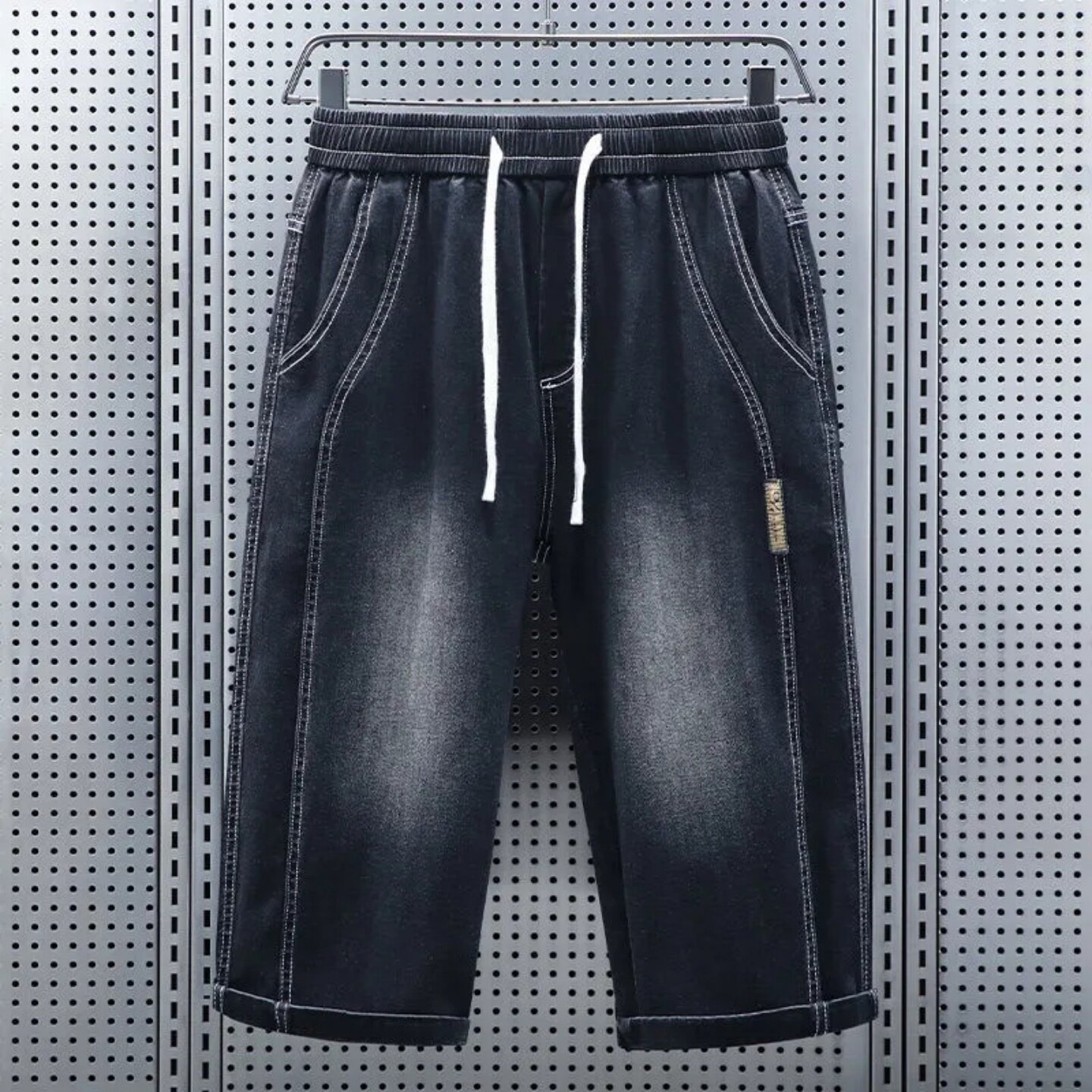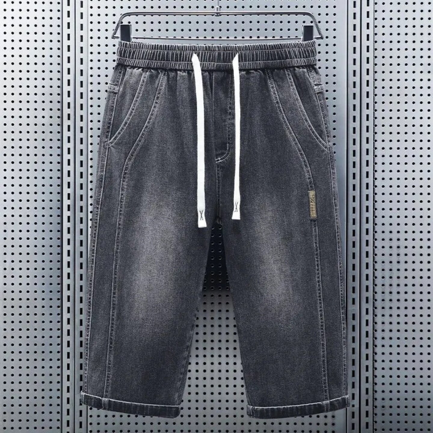 七分裤男款夏季薄款青年百搭弹力牛仔短裤男宽松直筒抽绳休闲中裤