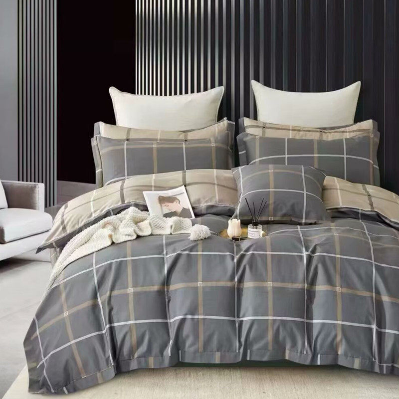 高品质纯棉~日式简约风几何条格男生士1.5/1.8四件套全棉床品套件