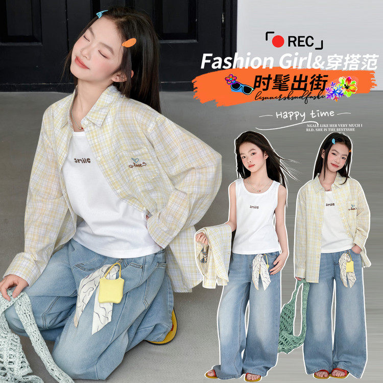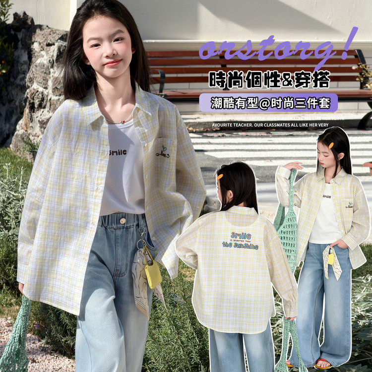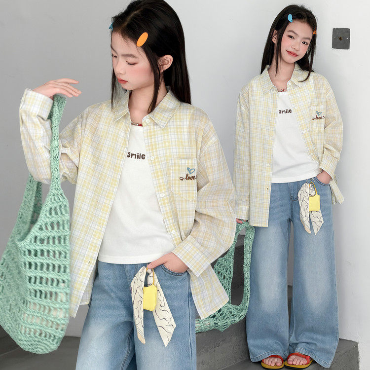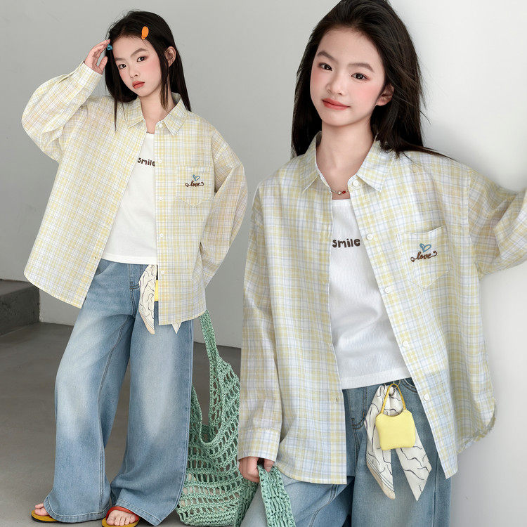 女童格子衬衫2026新款春装女大童超好看韩系洋气儿童春装衬衣外套