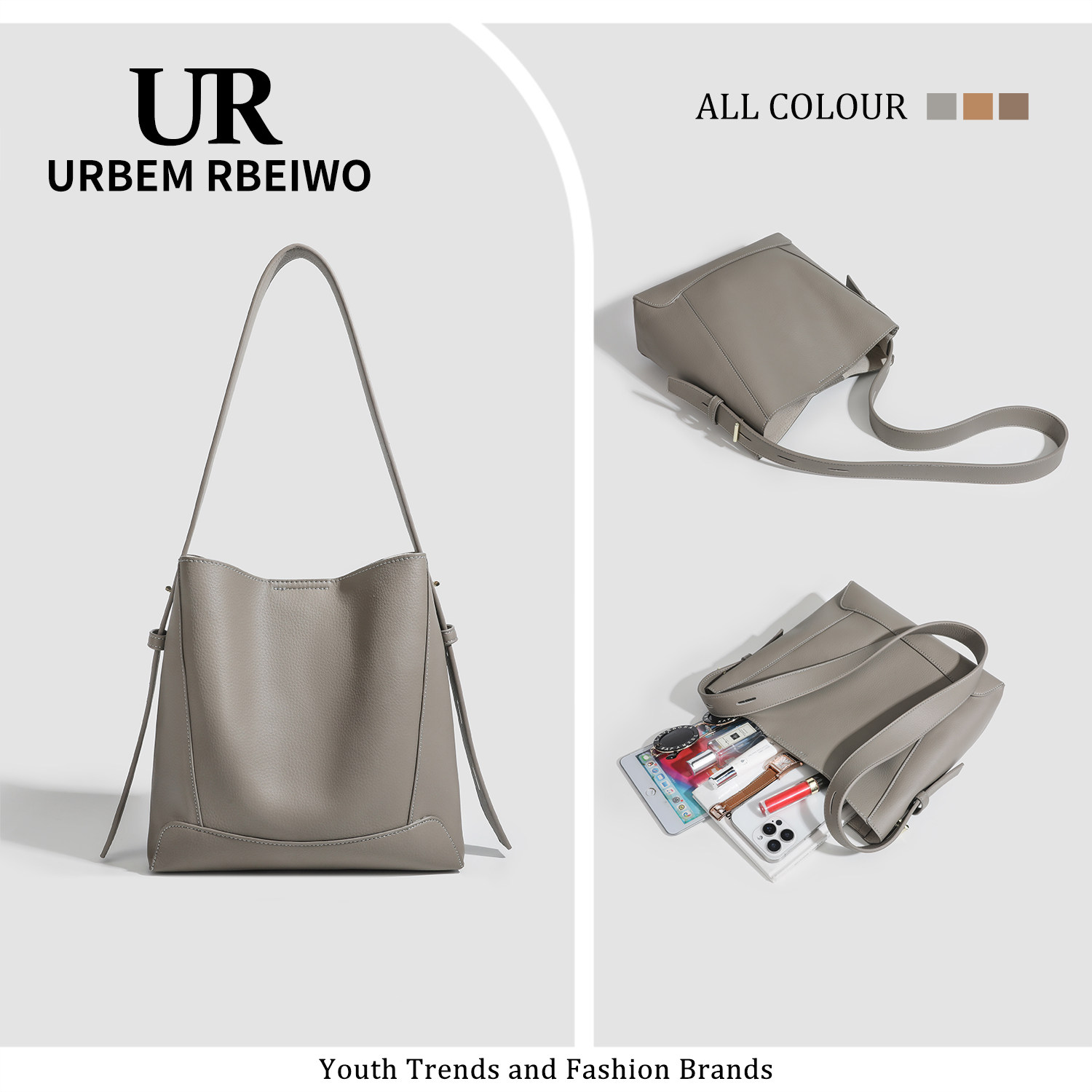 UR包包女经典时尚休闲百搭水桶包大容量软皮质托特包单肩斜挎包
