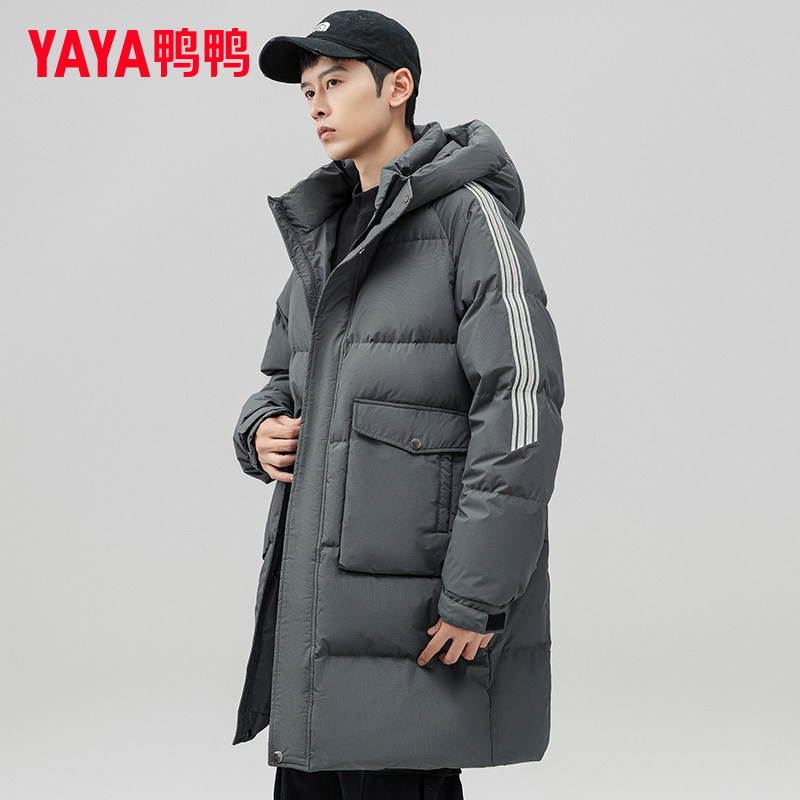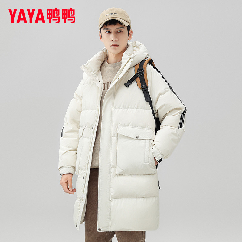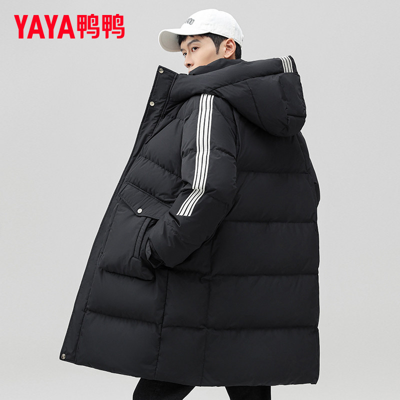 鸭鸭男士羽绒服中长款2024年冬季新款加厚保暖连帽青少年潮外套XZ