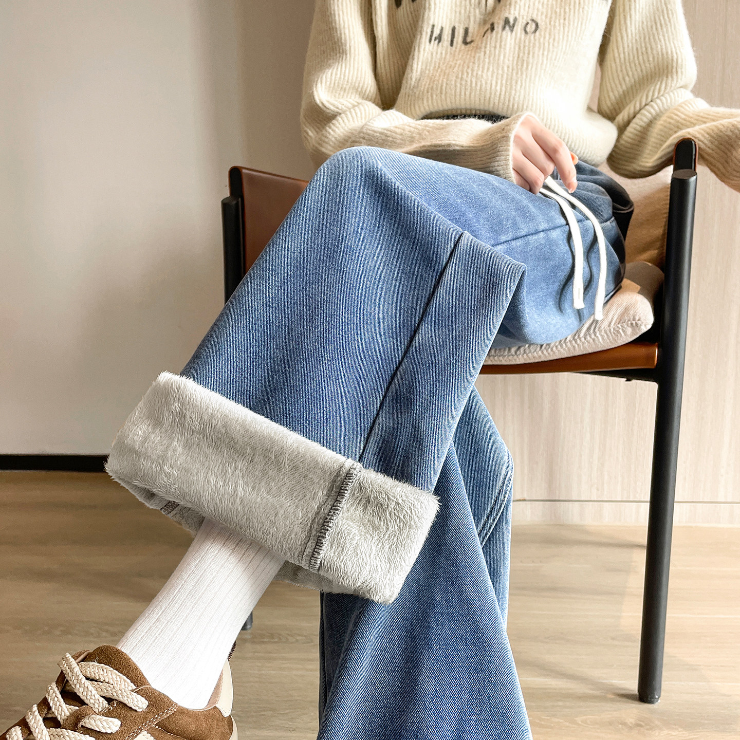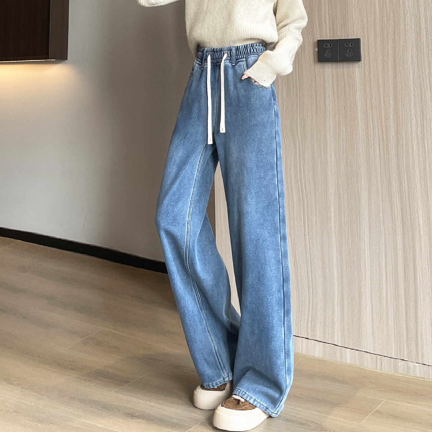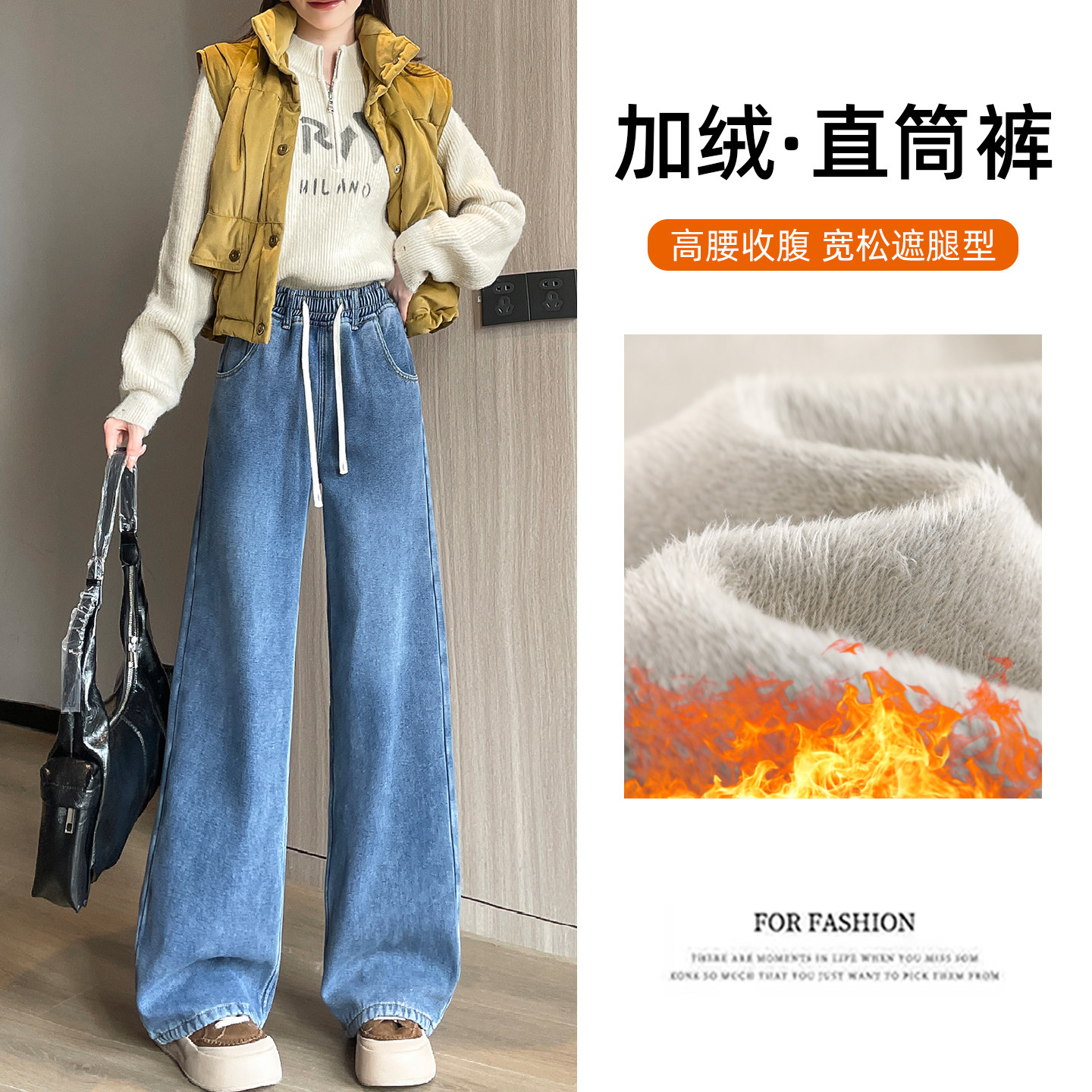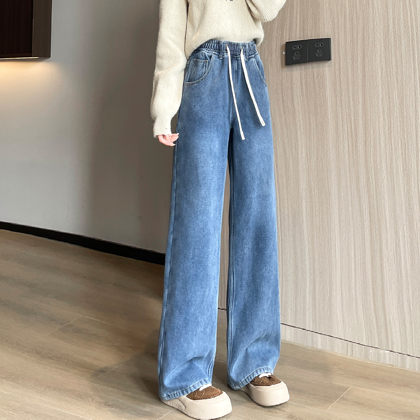 加绒初中生高中学生少女生冬装2025新款青少年阔腿牛仔裤子秋冬季