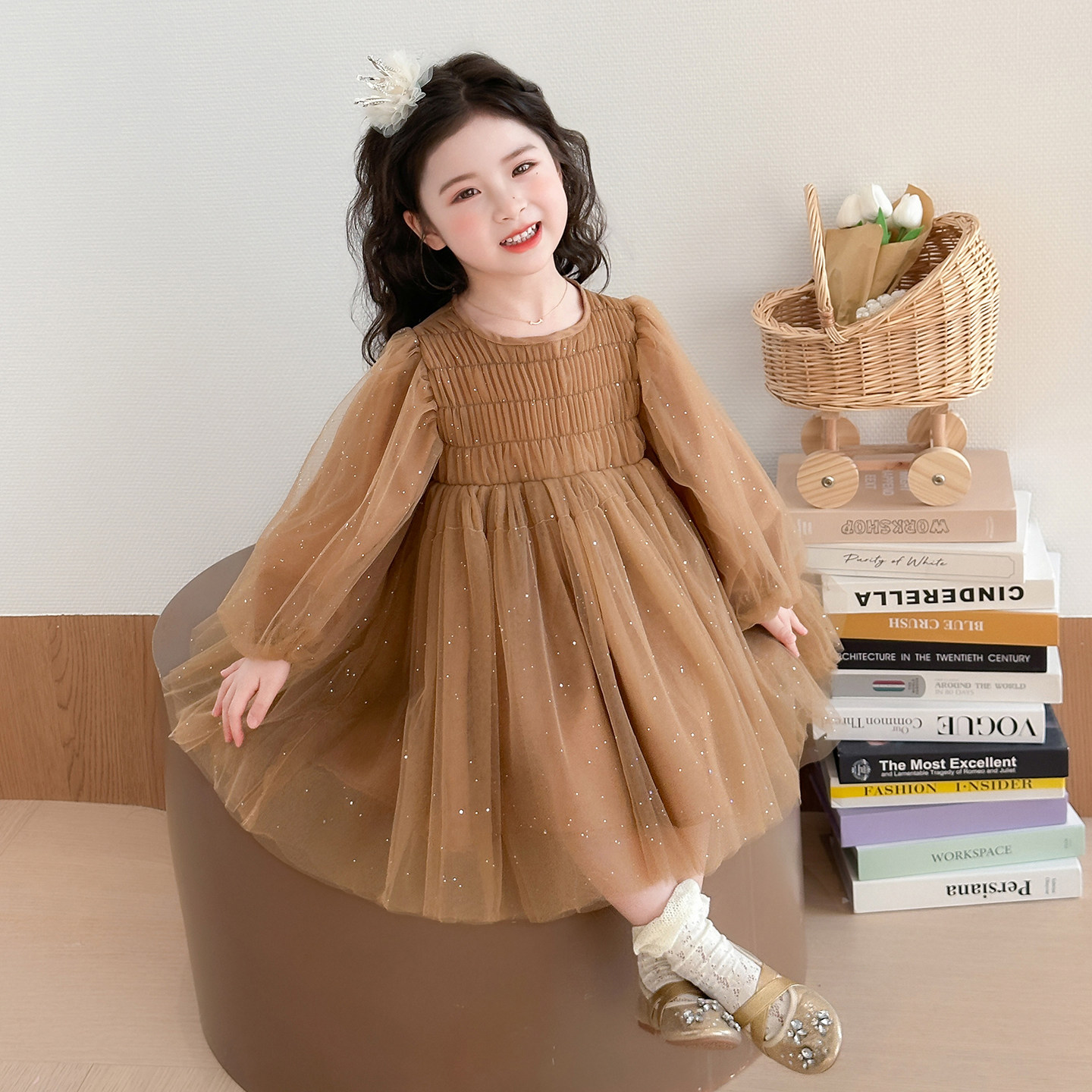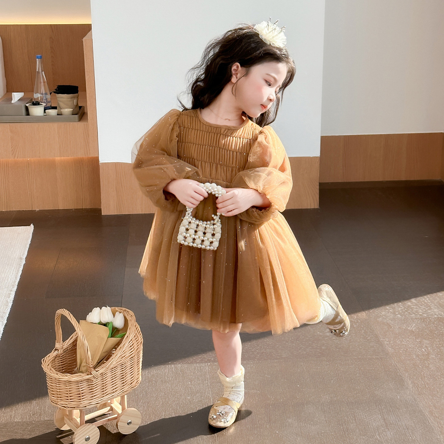 女童春装连衣裙2026新款洋气儿童长袖公主纱裙小女孩春秋高级裙子