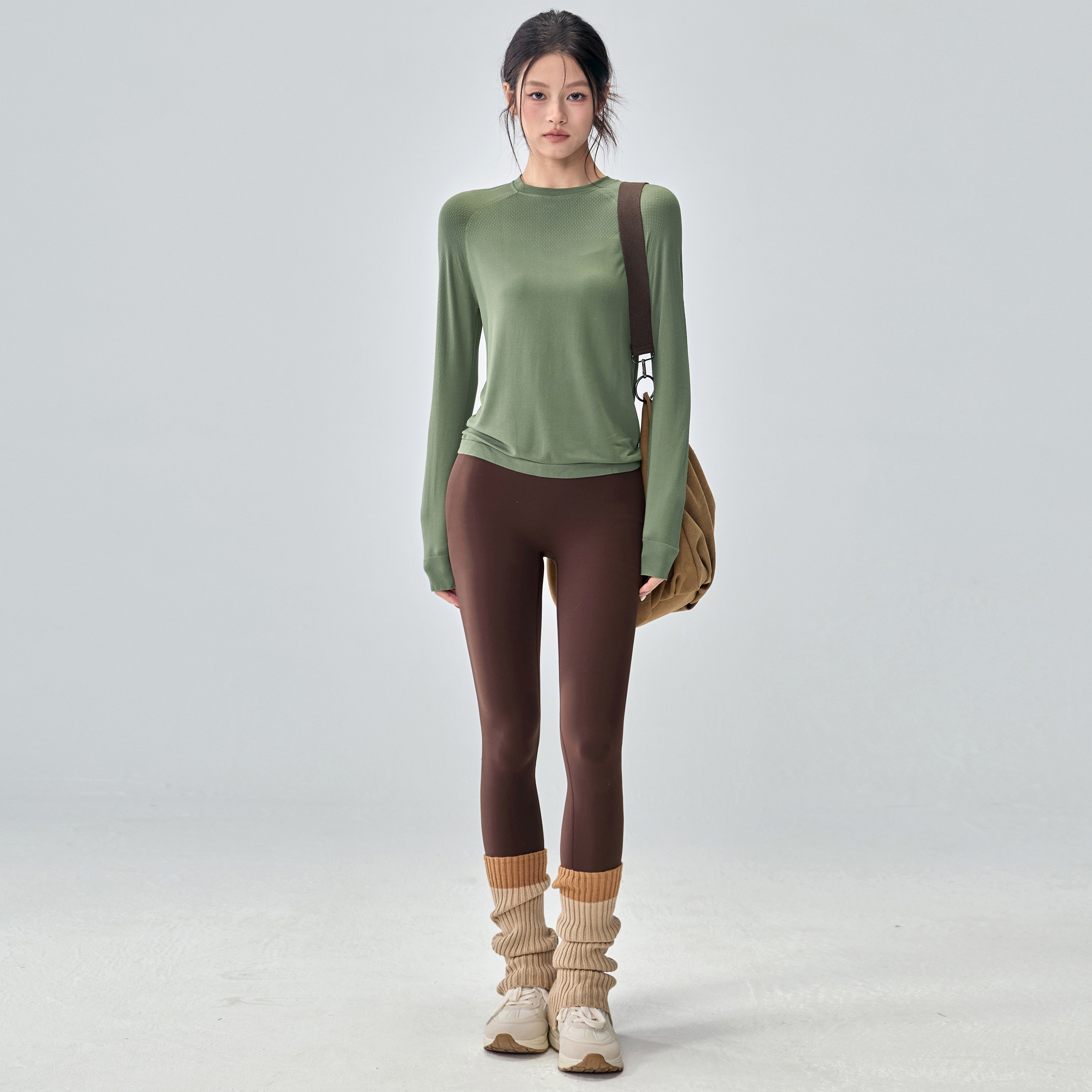 健身女孩秋冬新款瑜伽服套装圆领显瘦运动长袖速干普拉提训练上衣