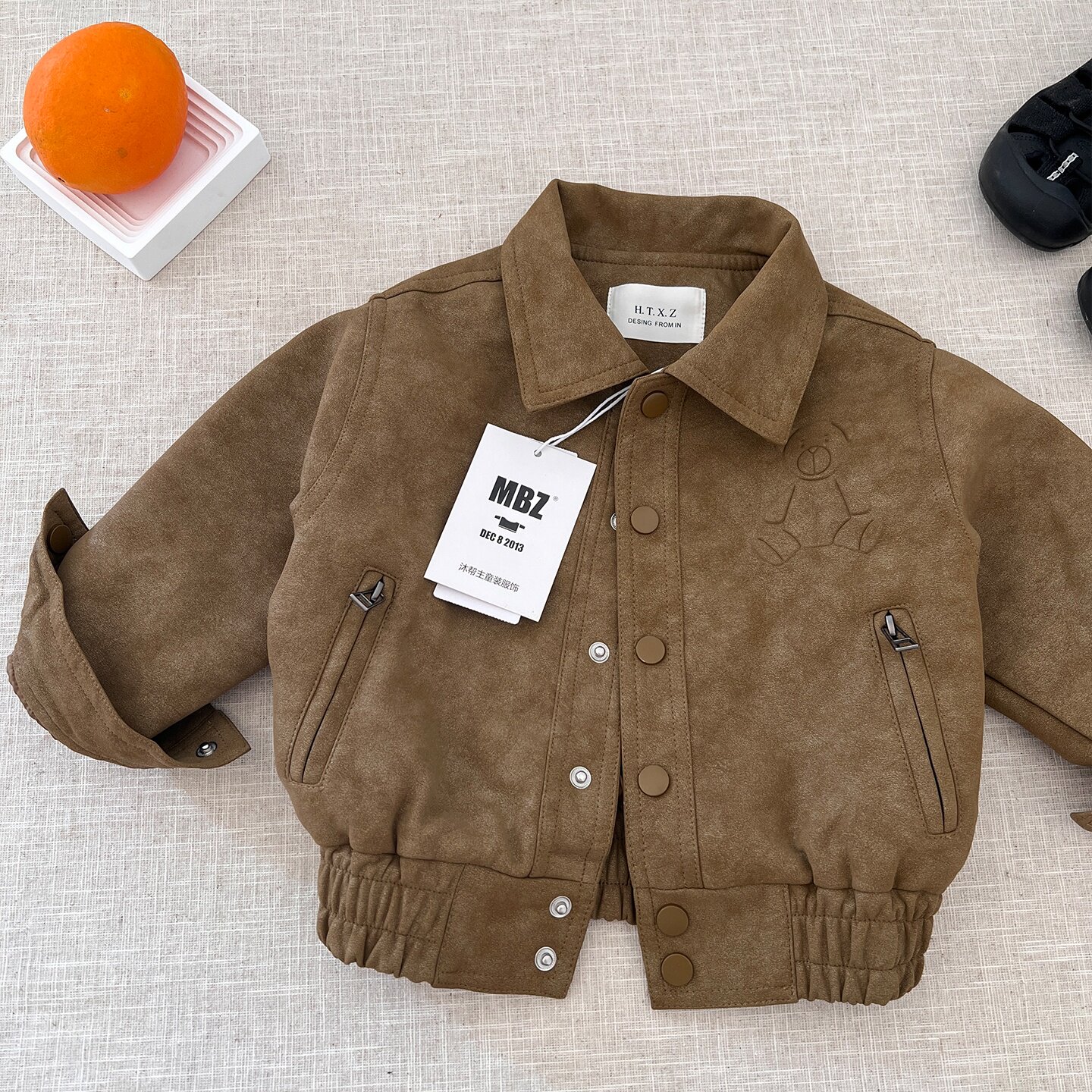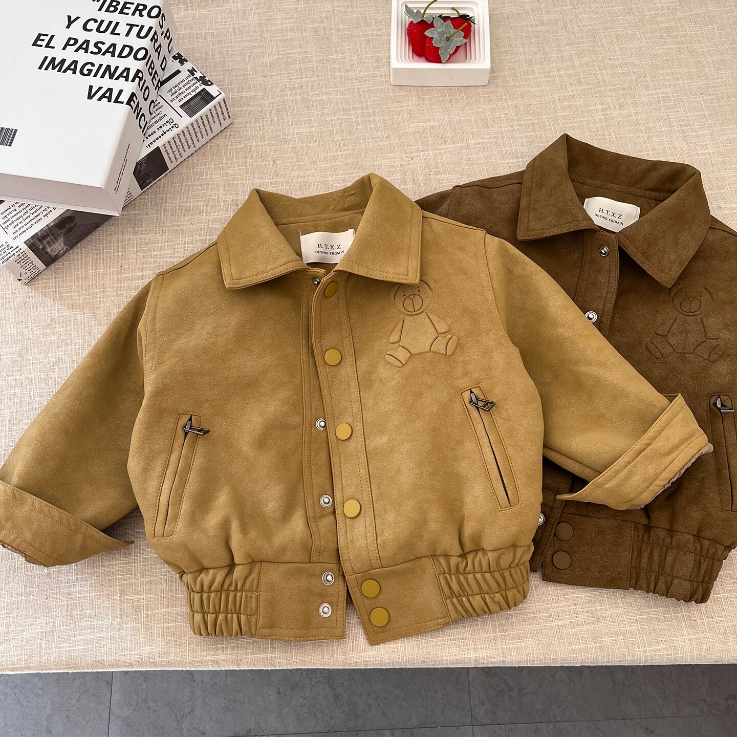 2026早春新款男童皮衣外套春装薄款复古宝宝春秋上衣小熊儿童夹克
