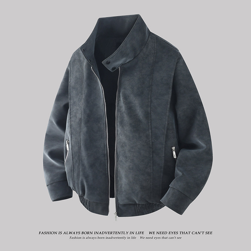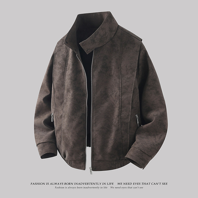 春秋季皮夹克男2026新款痞帅潮牌高级感立领麂皮春装男装外套皮衣