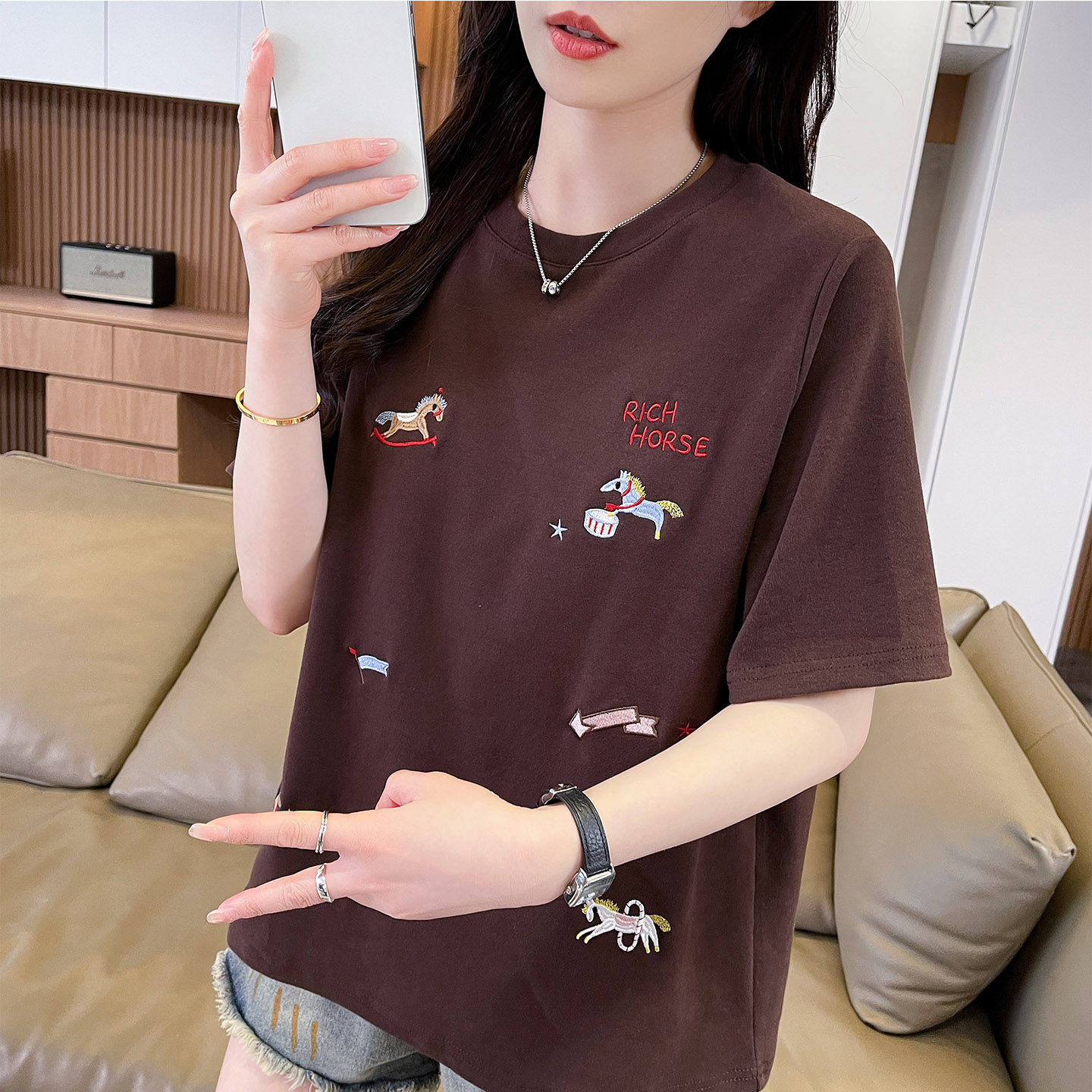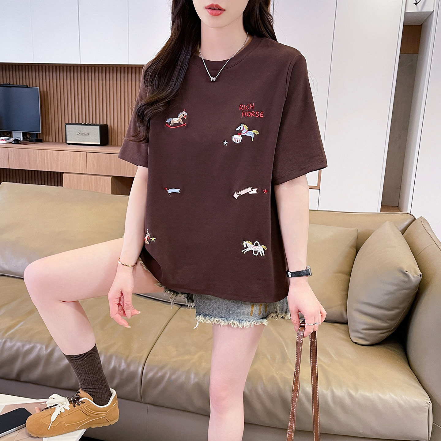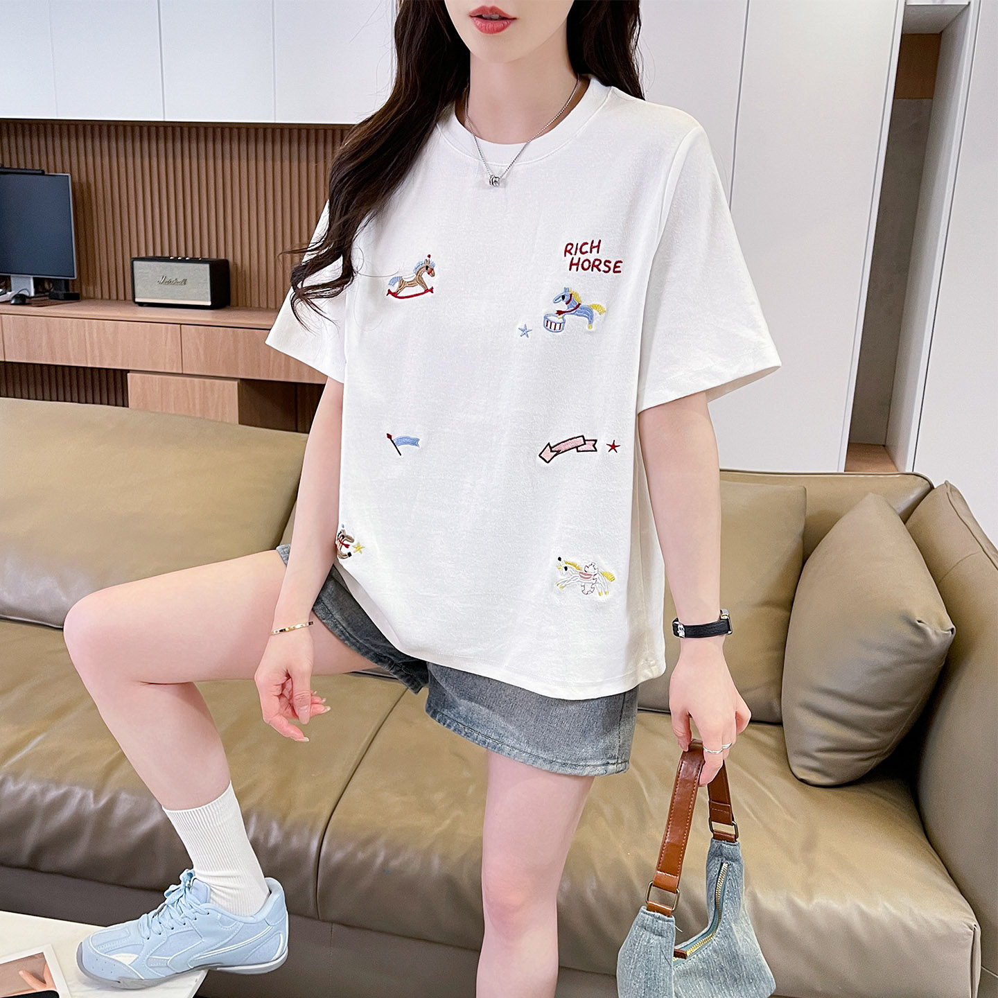 小马刺绣短袖t恤女2026新款夏季韩版宽松设计感小众初中生上衣服