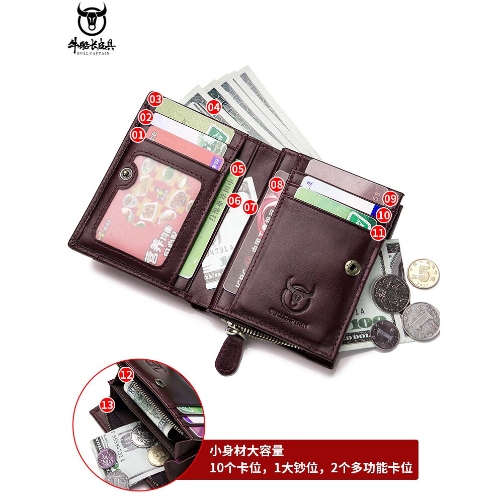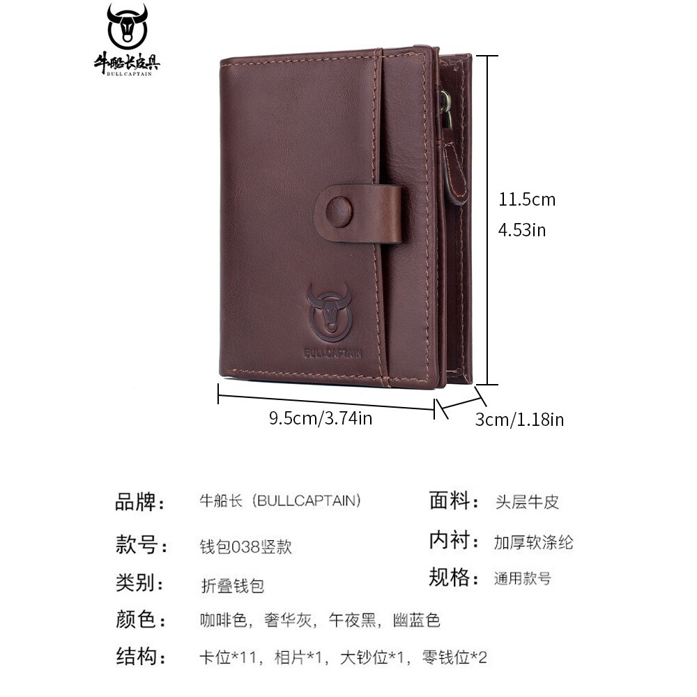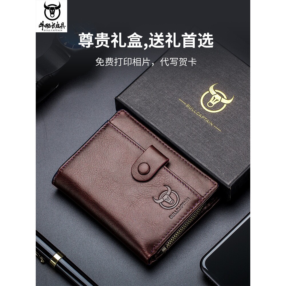 牛船长男士真皮钱包短款竖款多功能可分离带零钱夹商务休闲硬币包