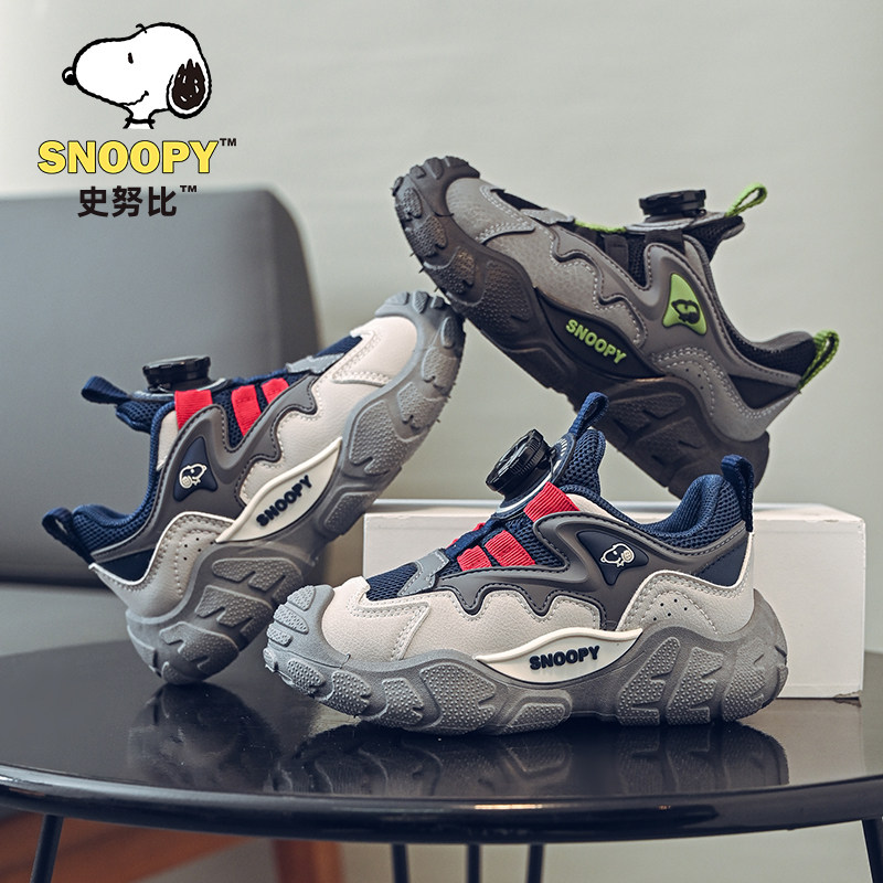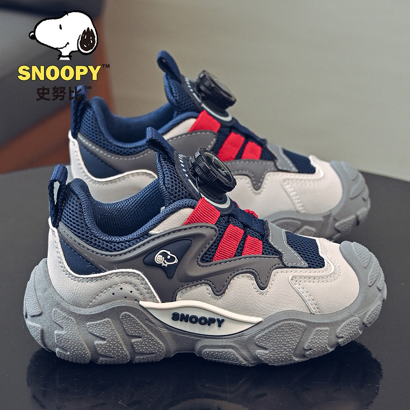 史努比儿童运动鞋网面透气6-12岁春季新款中大童旋钮鞋男童老爹鞋