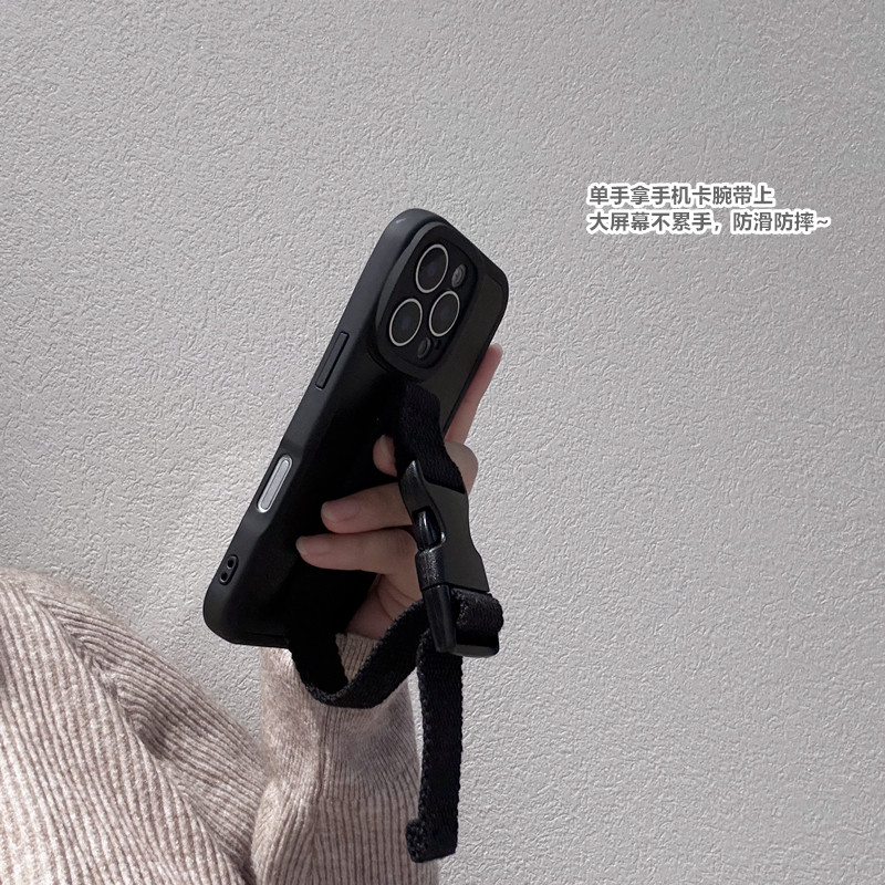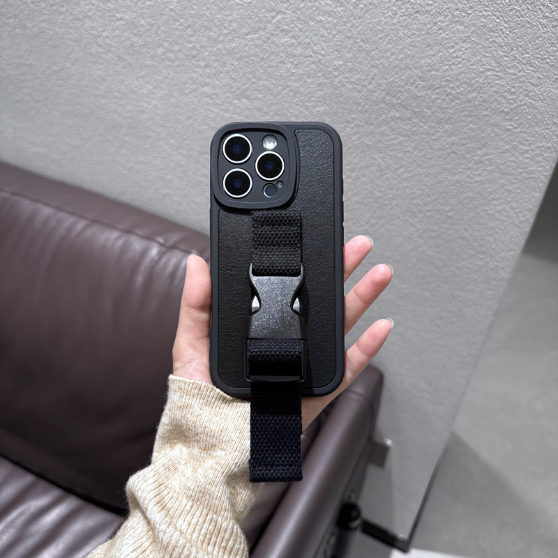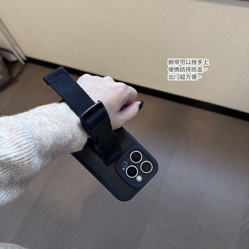 潮牌皮纹黑色适用苹果17 16 15 14Pro Max手机壳腕带iPhone13 12华为mate60 pura70小米15皮纹定制型号