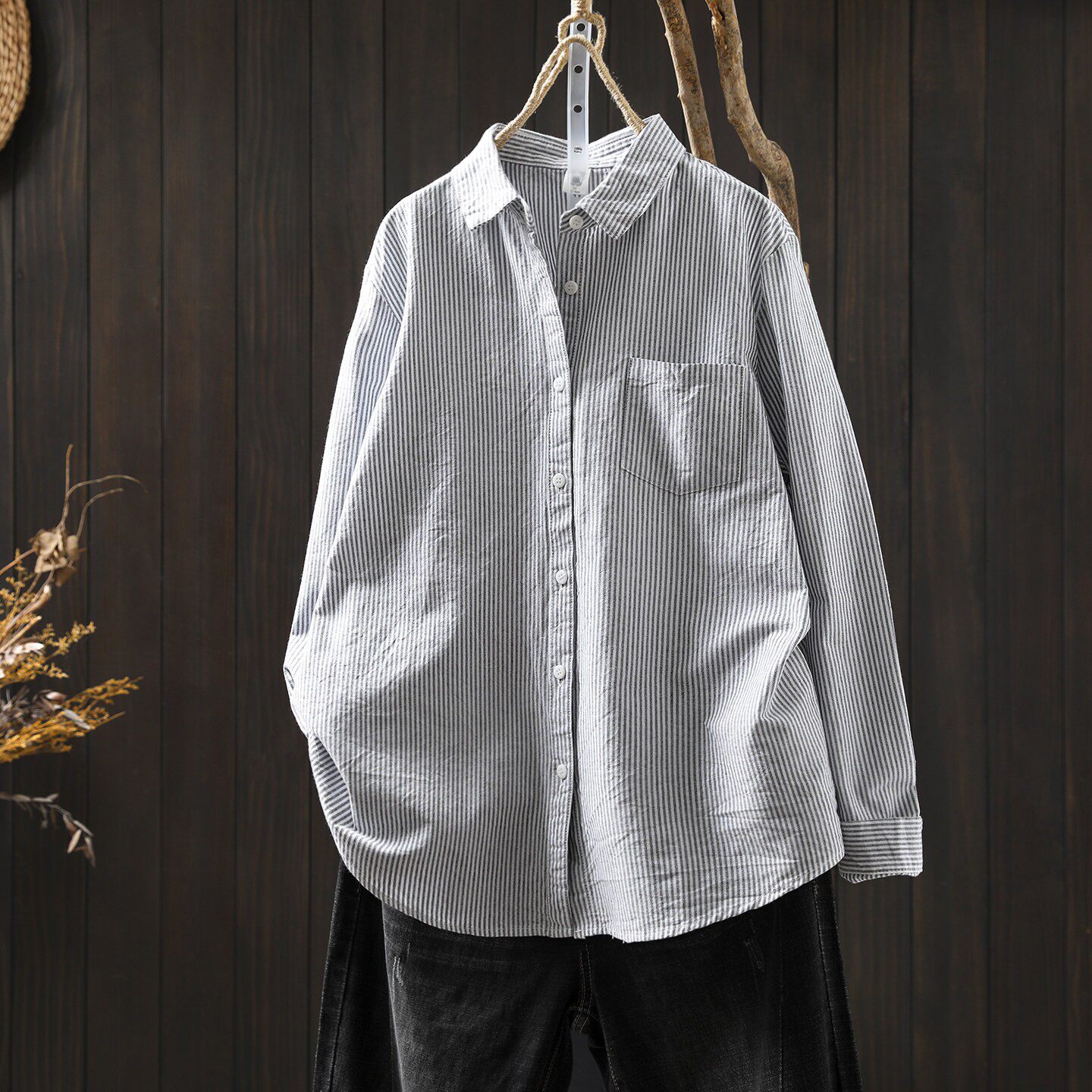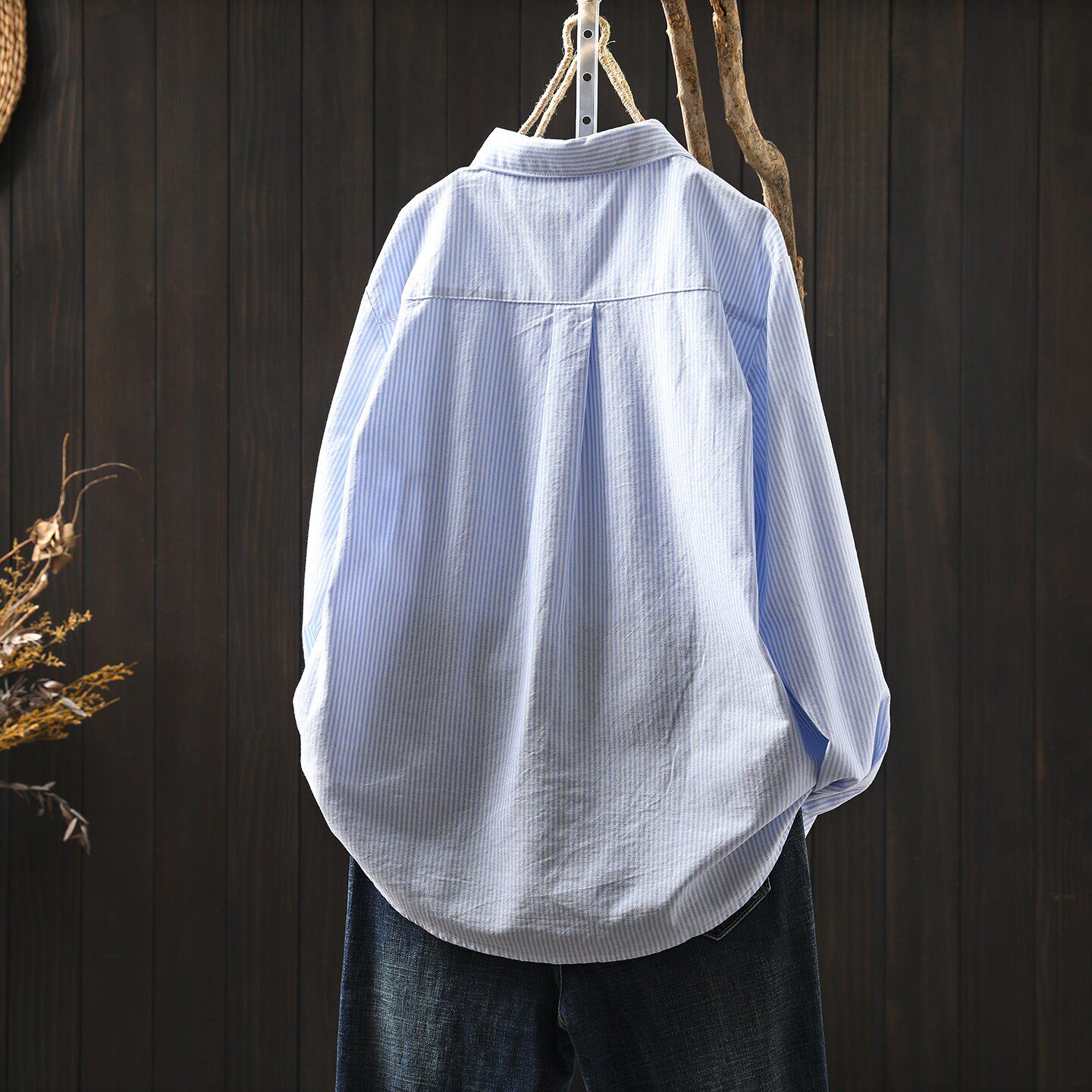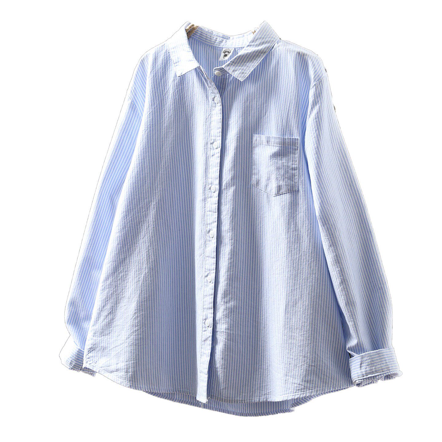条纹蓝色衬衫内搭叠穿女款2026新款爆款春季长袖翻领纯棉打底上衣