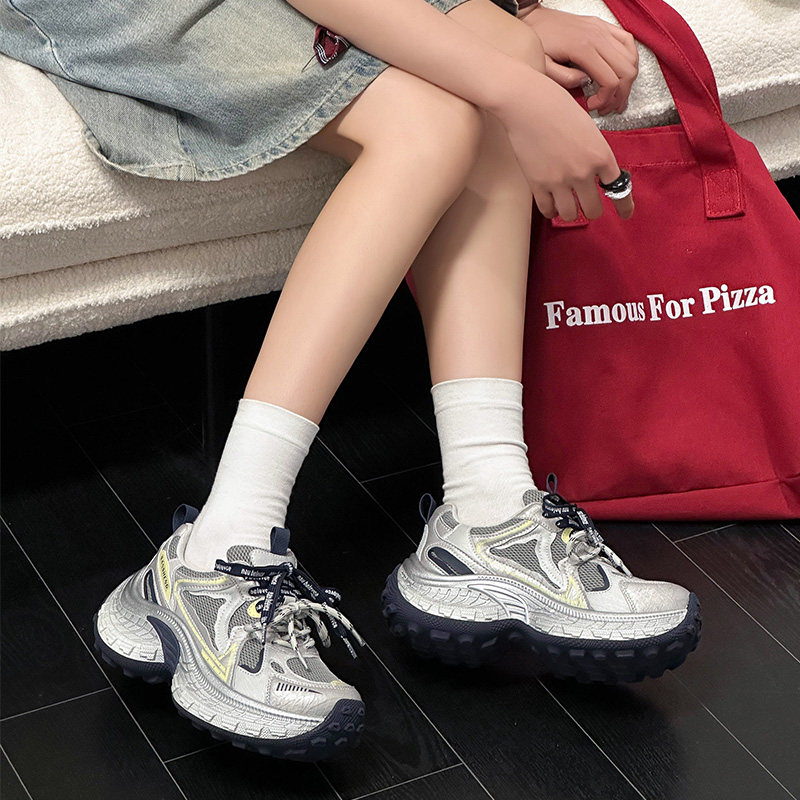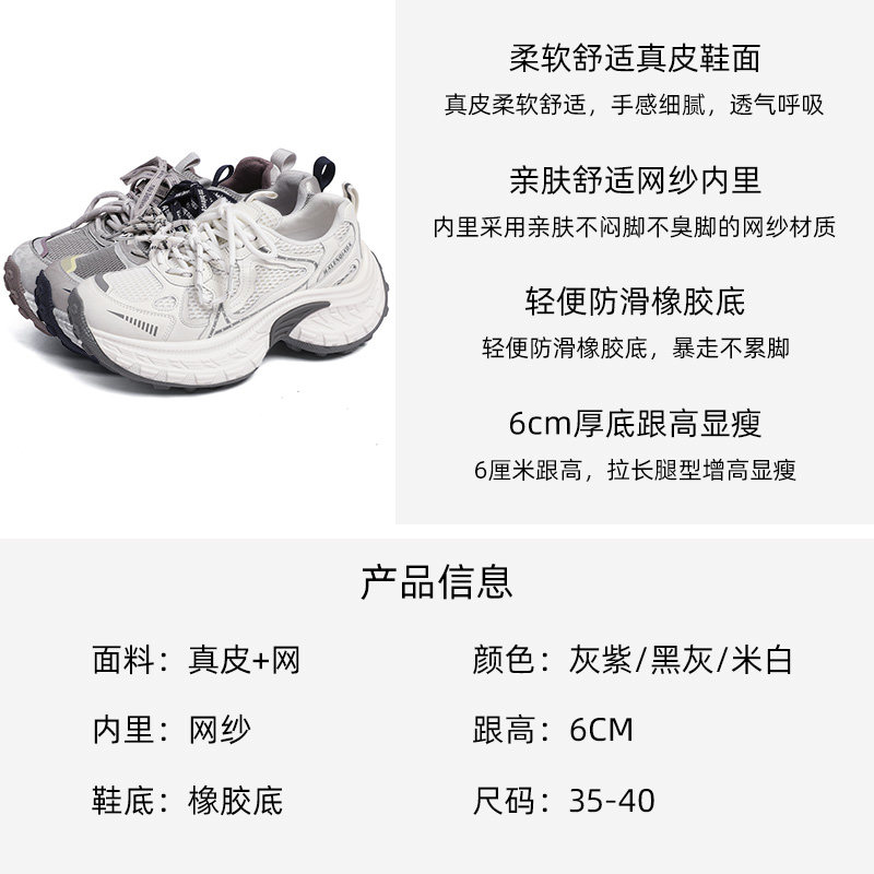 真皮厚底老爹鞋2026新款女款春夏季网纱透气运动鞋女减震跑步轻便
