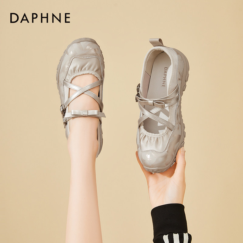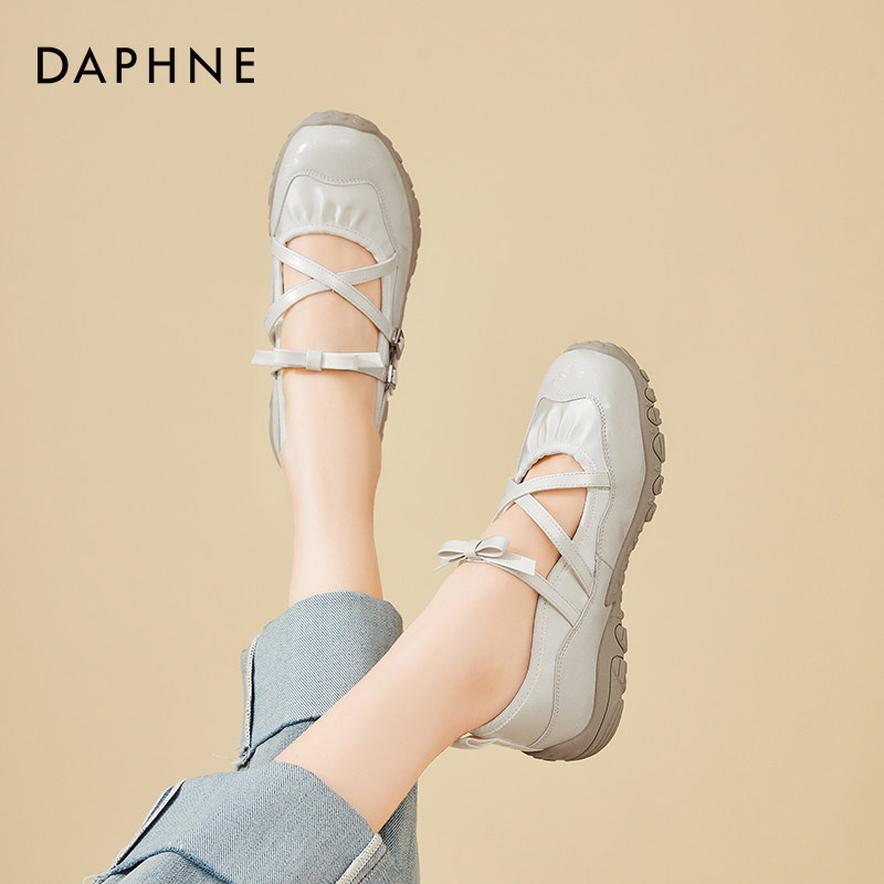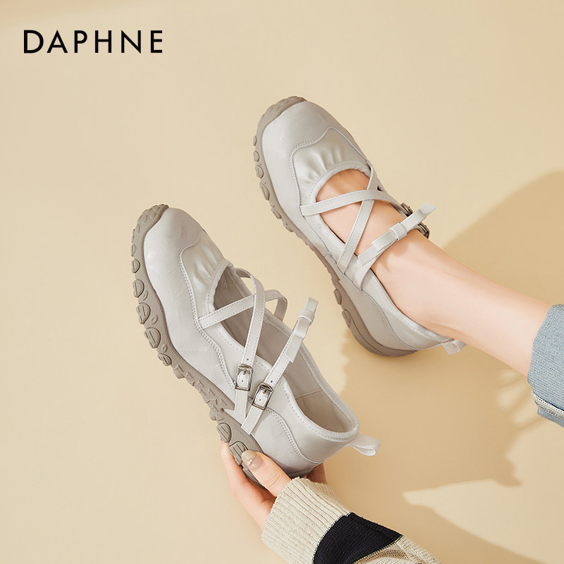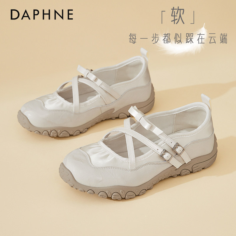 达芙妮法式浅口单鞋女2026春夏新款白色芭蕾交叉带平底玛丽珍女鞋