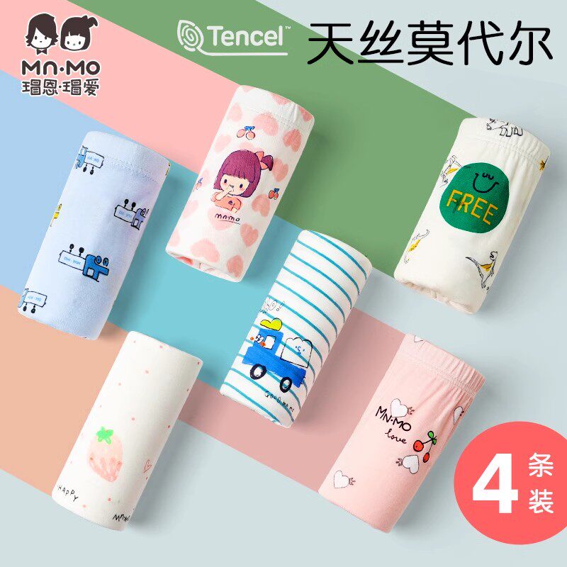 瑁恩瑁爱儿童内裤男童女童莫代尔薄款透气三角平角短裤宝宝四角裤
