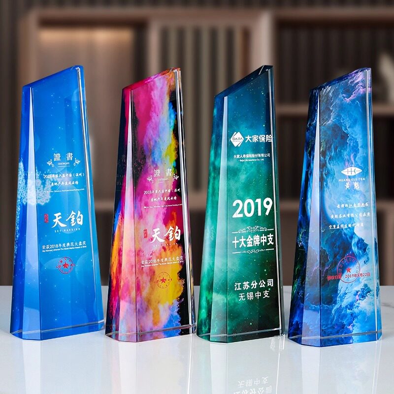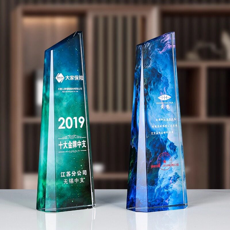彩印水晶奖杯定制定做高档创意奖杯奖牌刻字玻璃优秀员工比赛纪念