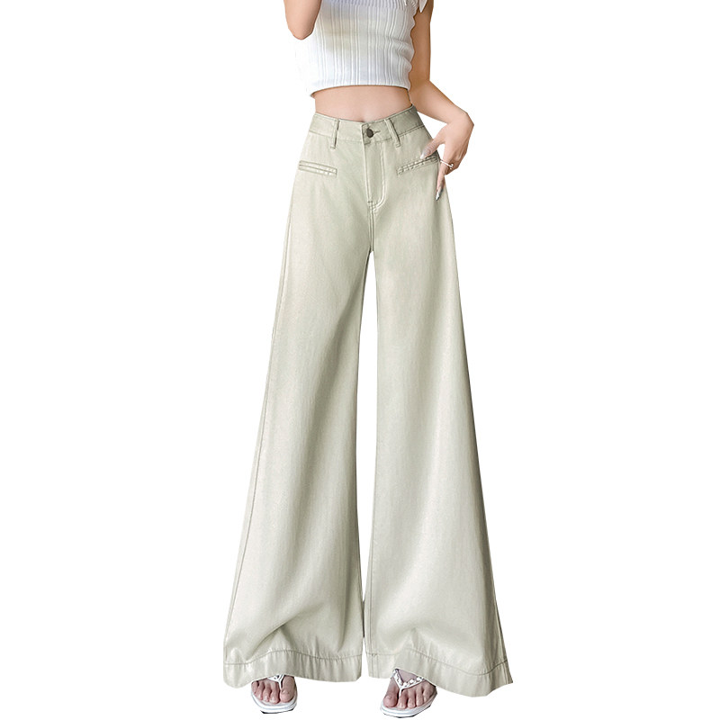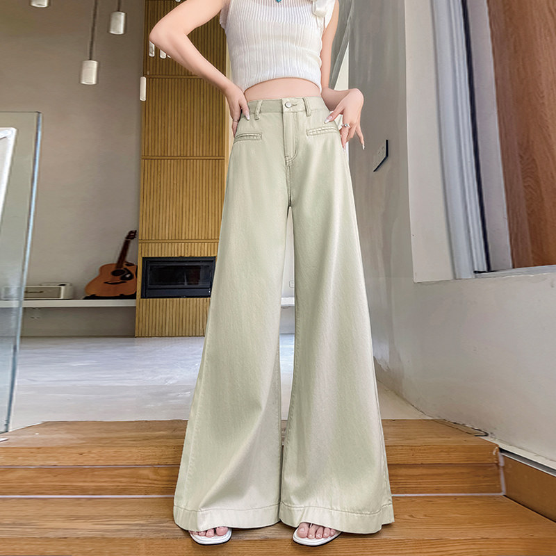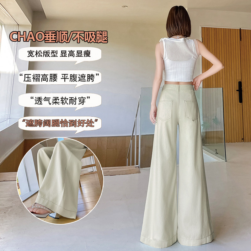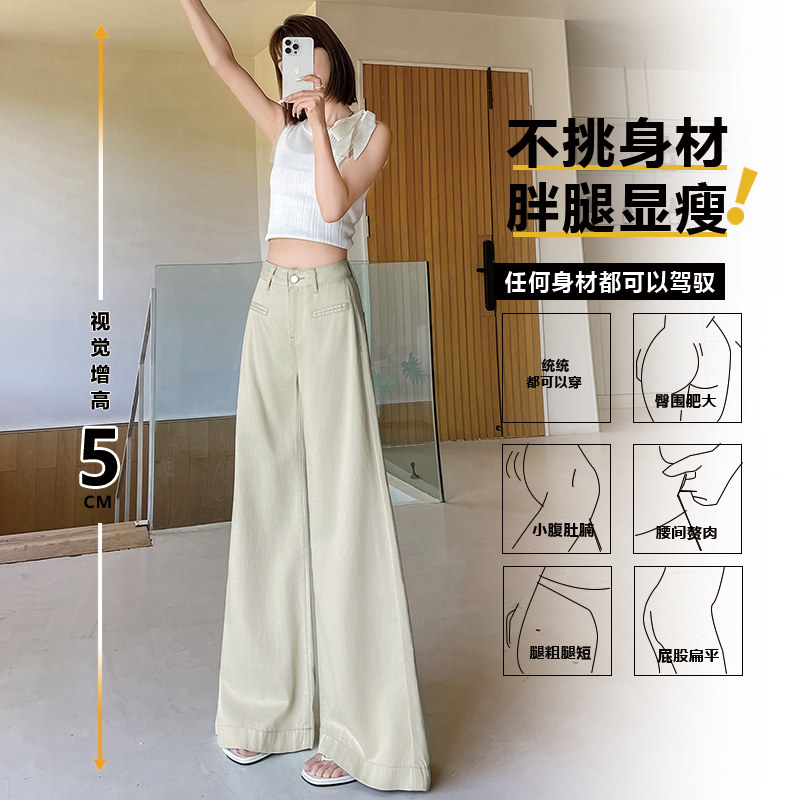 茶绿色天丝阔腿牛仔裤女2026年新款夏季薄款超火高级感直筒喇叭裤