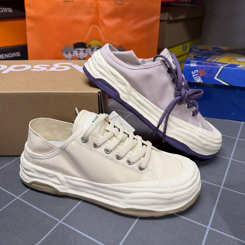 撤柜一脚蹬帆布鞋春季女板鞋懒人半托休闲厚底百搭女鞋爆款单鞋