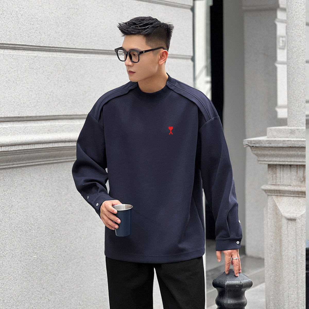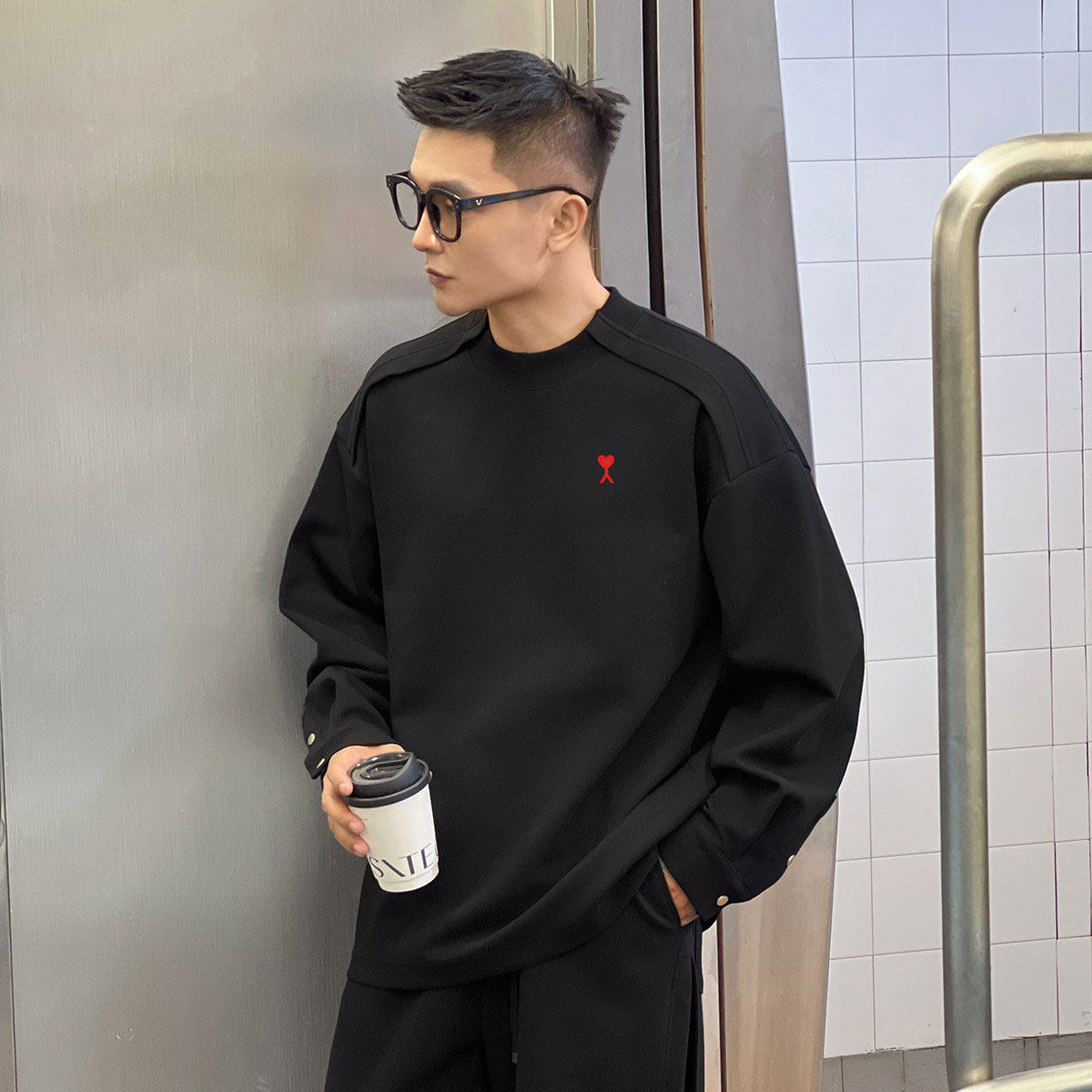 正品AMI DRAJK男士秋季简约高级感长袖卫衣设计款显肩宽百搭上衣