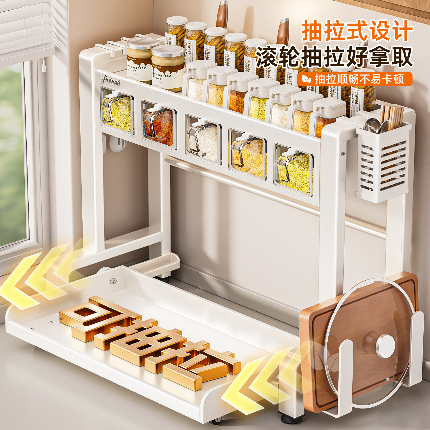 抽拉式厨房调料品置物架多功能台面放调味料瓶罐放置架筷子收纳盒